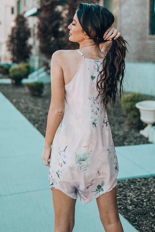 Summer Floral Print Pink Sleeveless Dress
