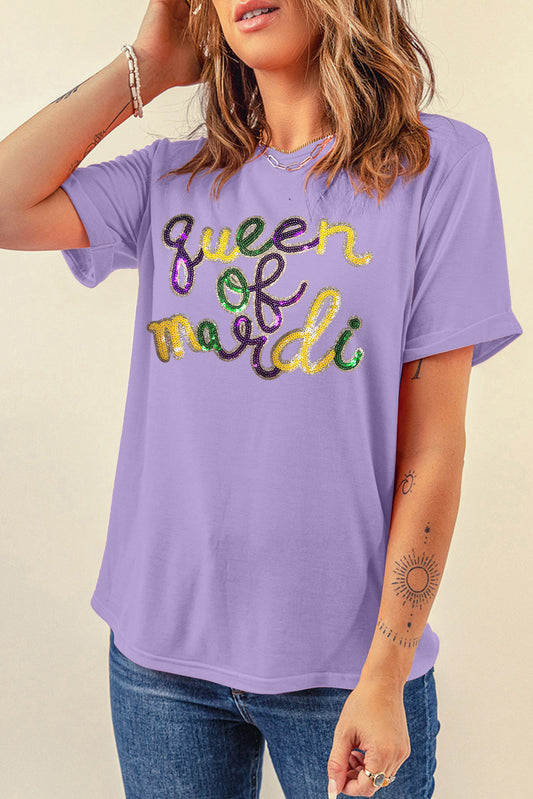 White queen of mardi Sequin Letter Graphic T Shirt