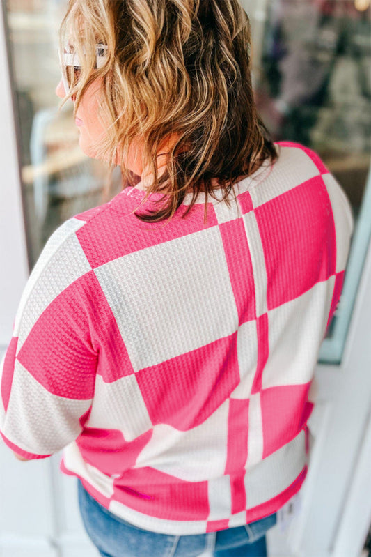 White Textured Checkerboard Round Neck Plus Size T Shirt