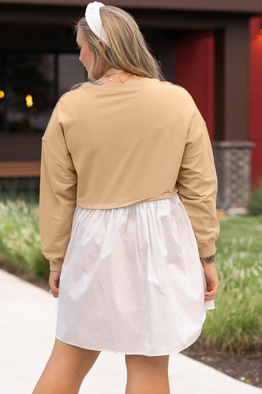 Apricot Color Block Patchwork Ruffled Plus Size Mini Dress