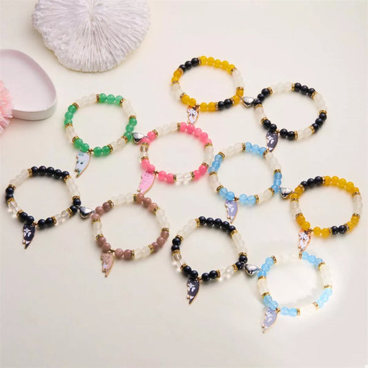 2 Piece Beaded Cat Charm Bracelet
