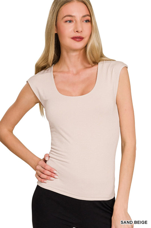 Zenana Double Knit Exposed Seam Curved Hem Top
