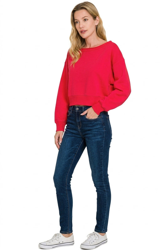 Zenana Fleece Boat-neck Sweatshirt