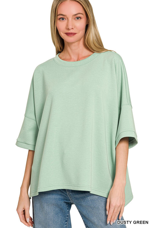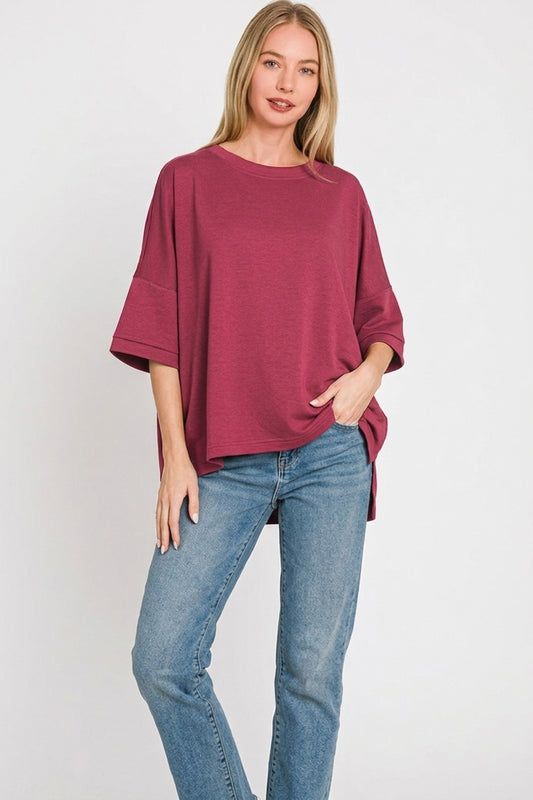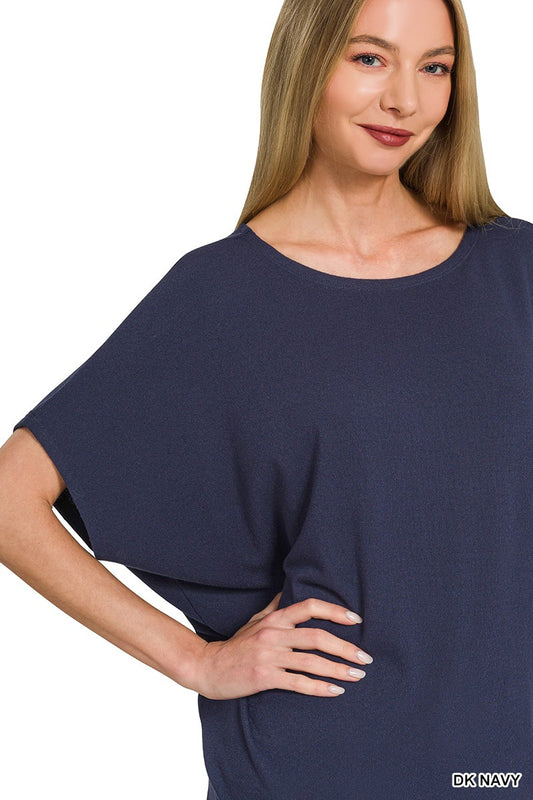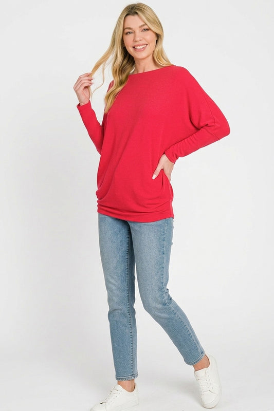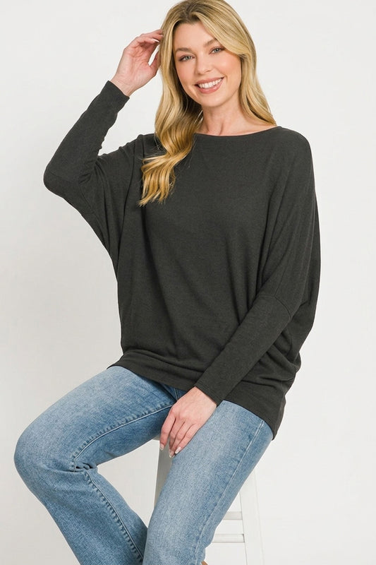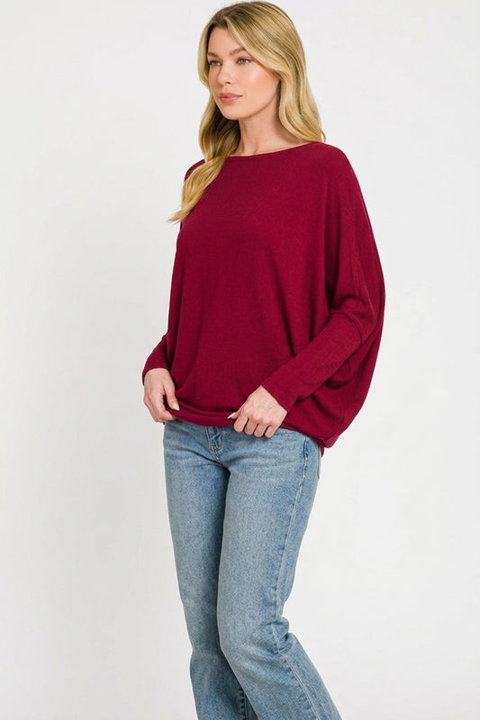 Zenana Hacci Dolman Sleeve Boat Neck Top