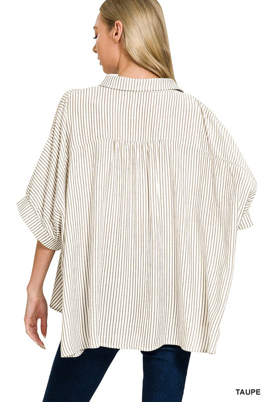 Zenana Full Size Woven Stripe Button Down Boxy Shirt Plus Size