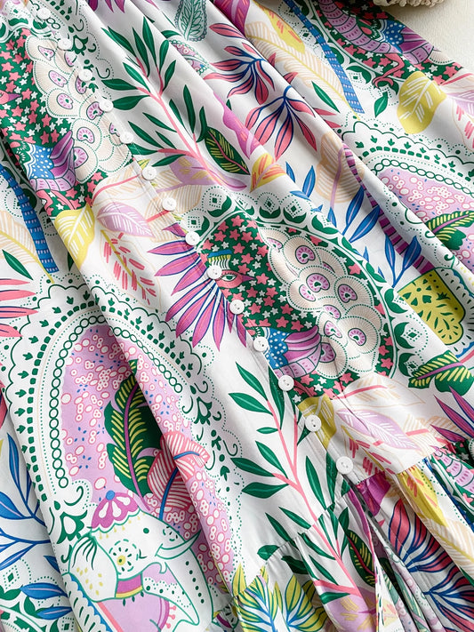 Lace Detail Printed Short Sleeve Midi Dress