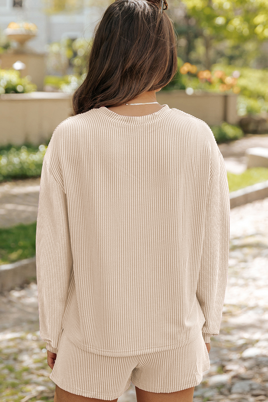 Parchment Plus Size Textured Drop Shoulder Crew Neck Sweatshirt
