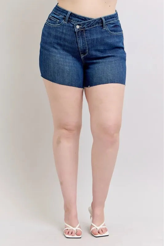 Judy Blue Full Size High Waist Criss-Cross Waistband Denim Shorts Plus Size