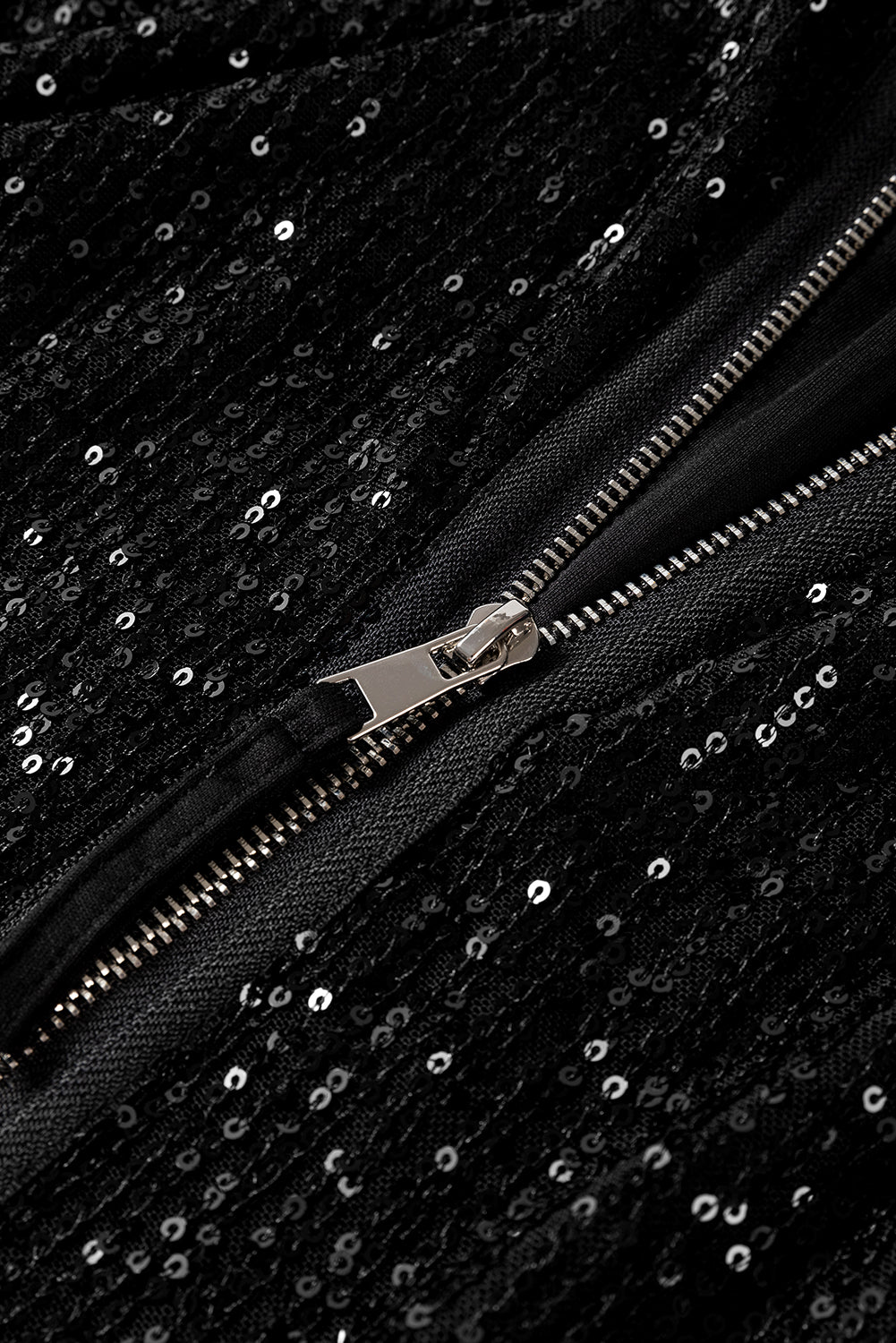 Apricot Sequin Zip up Round Neck Long Sleeve Jacket