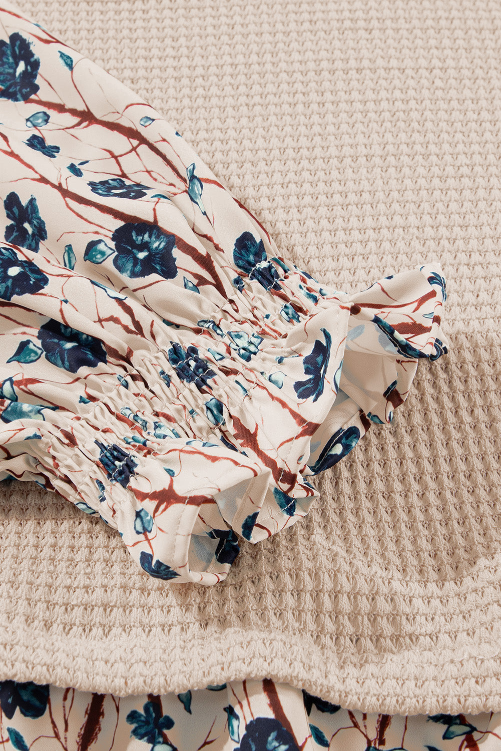 Beige Faux Two Piece Knit Patchwork Floral Print Plus Size Top