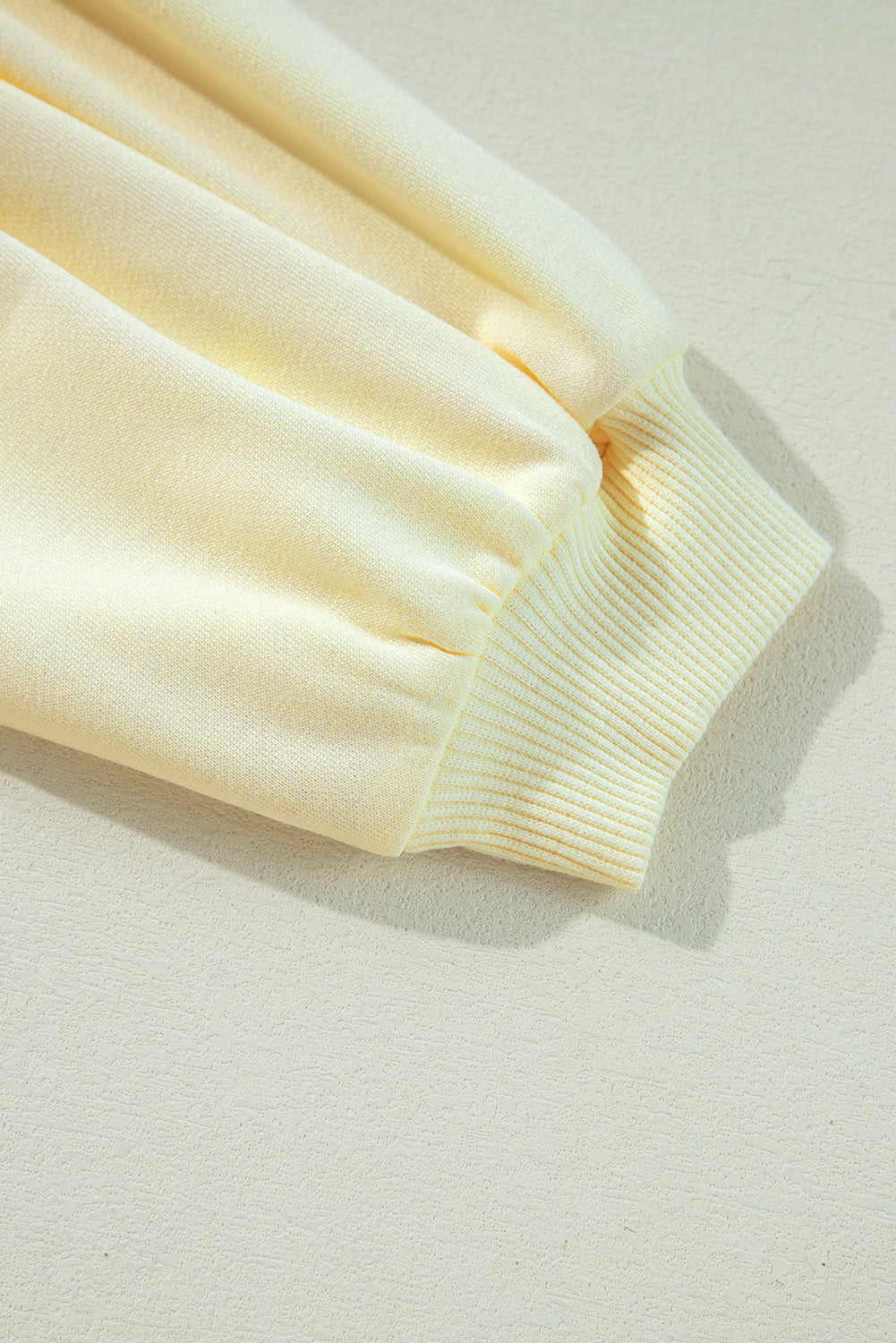 Beige Tinsel Flower Dropped Puff Sleeve Sweatshirt