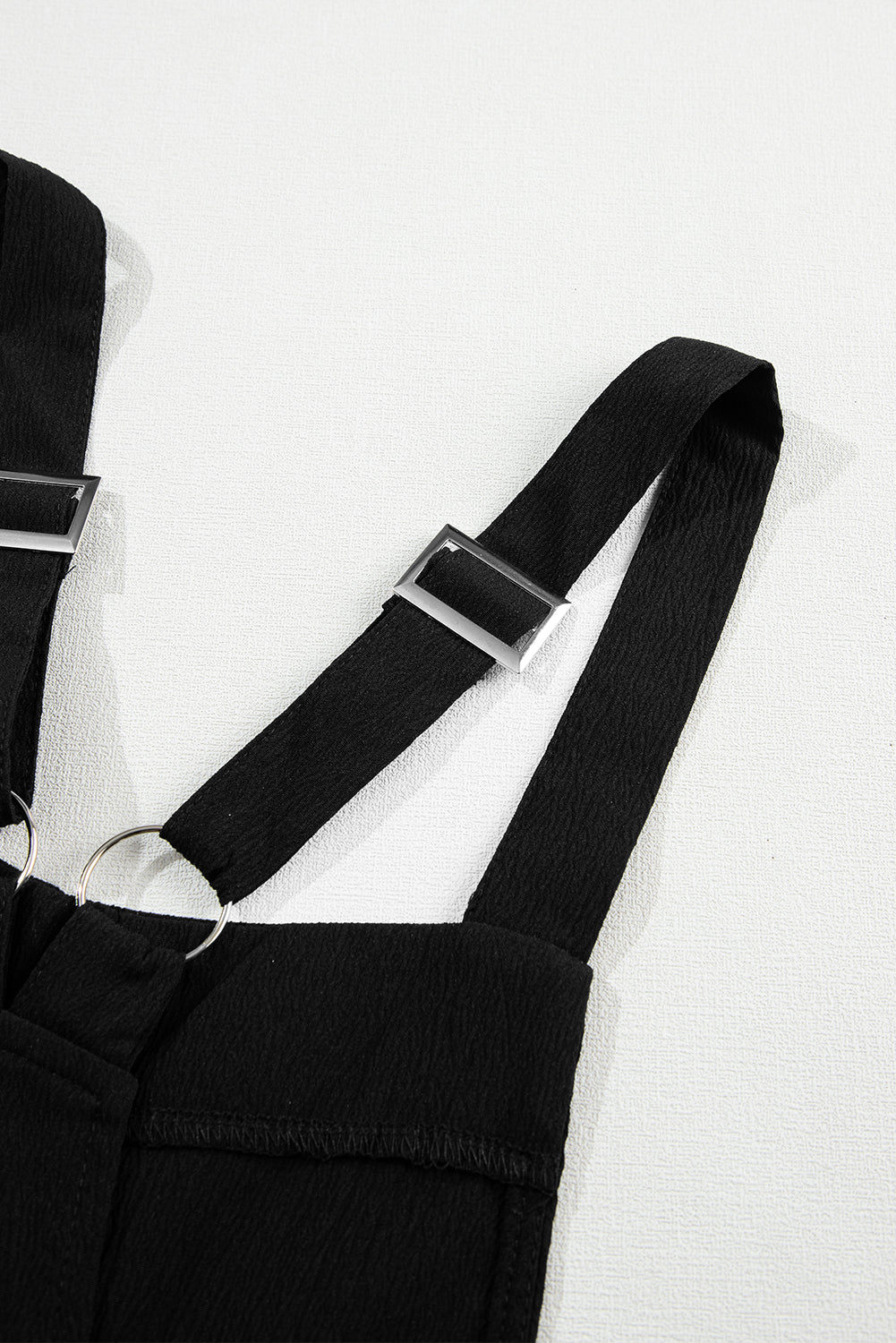 Black Adjustable Buckle Straps Cropped Jumpsuit