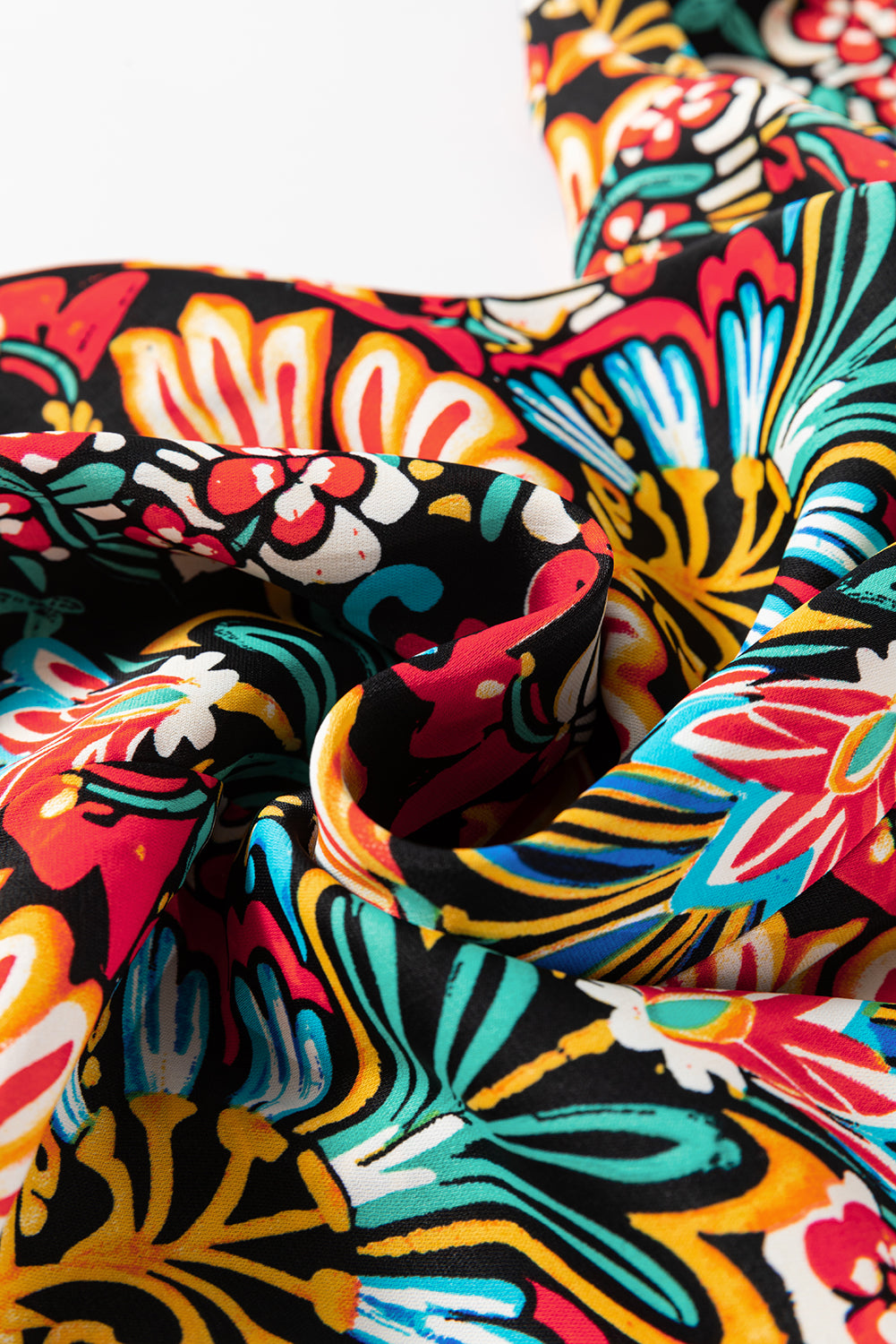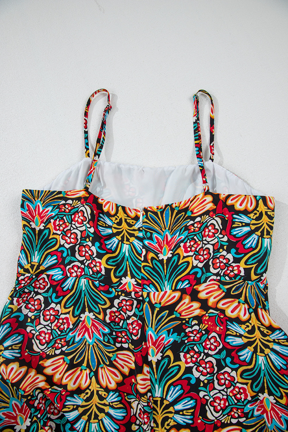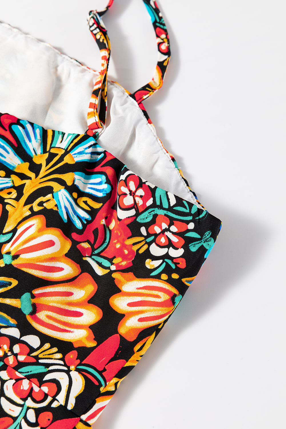 Black Boho Floral Print Thin Straps Sleeveless High Waist Maxi Dress