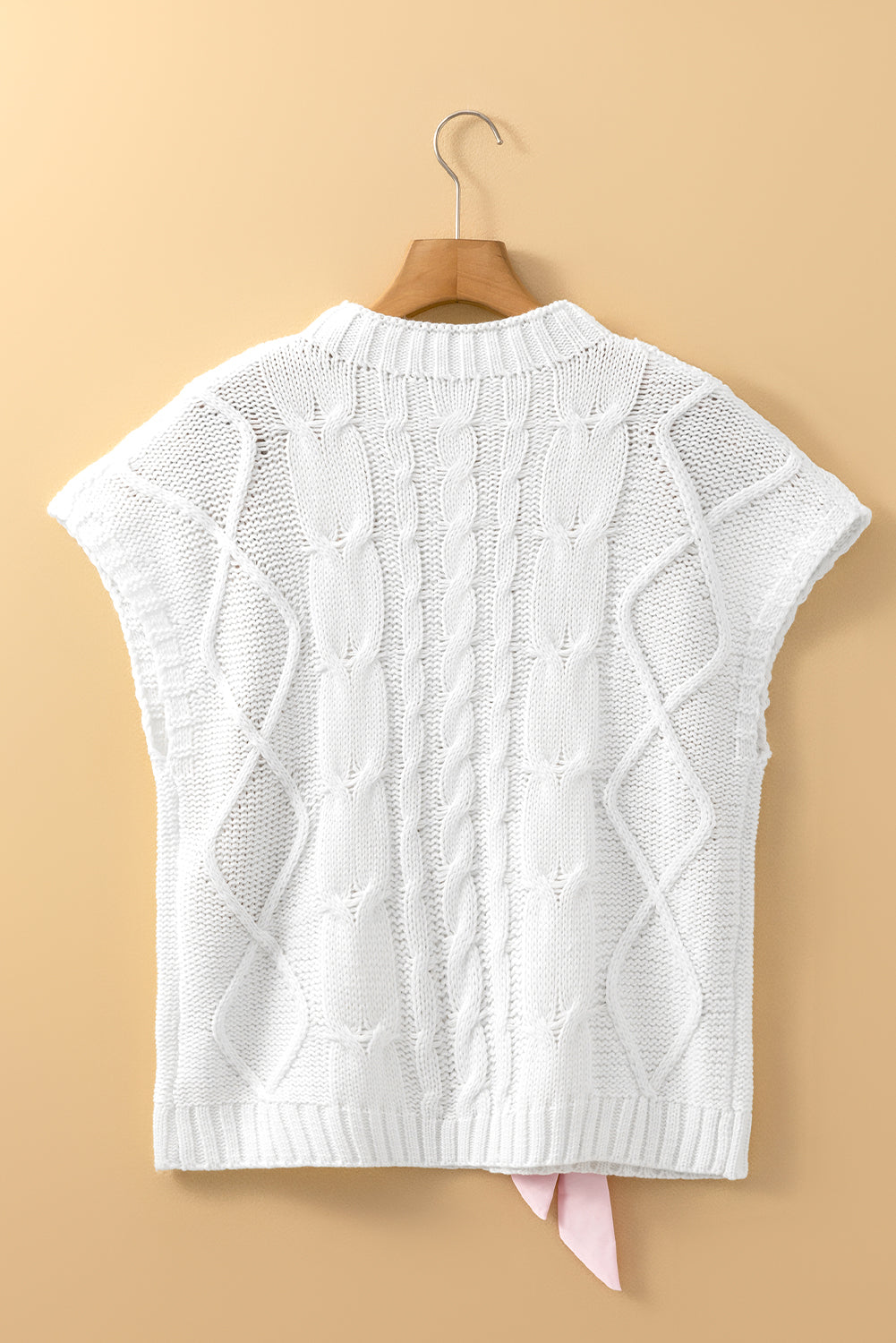 Black Cable Knit Colorblock Satin Bowknot Short Sleeve Sweater