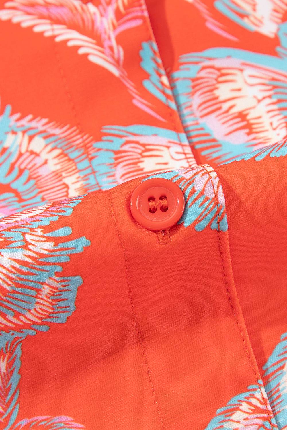 Black Floral Print Lapel Collar Loose Shirt Mini Dress