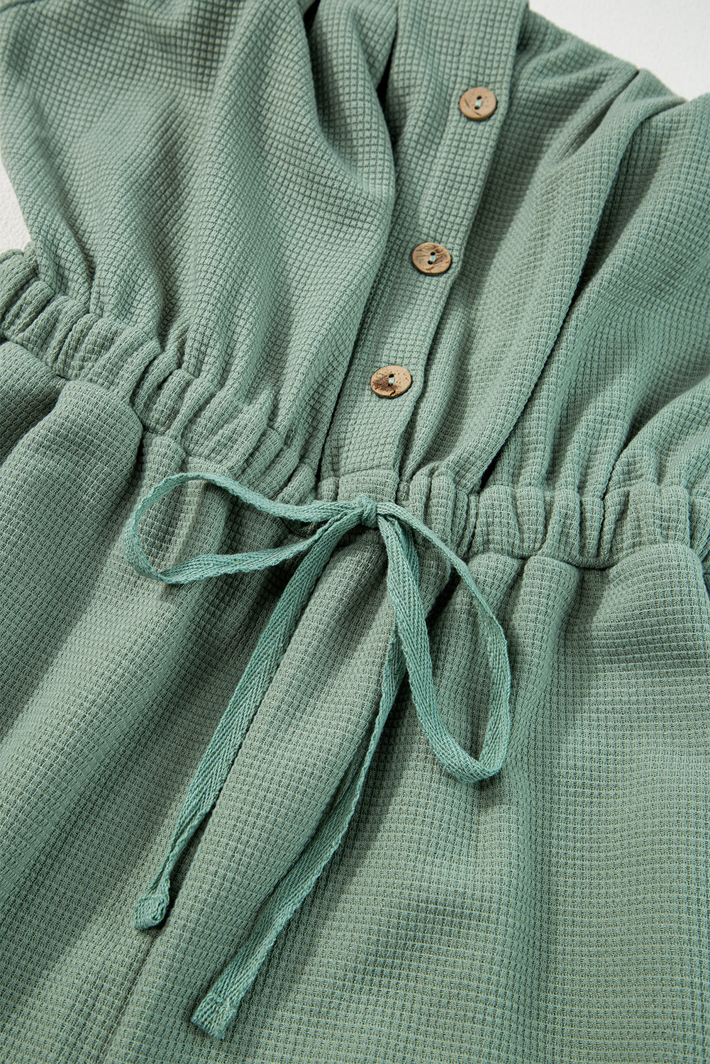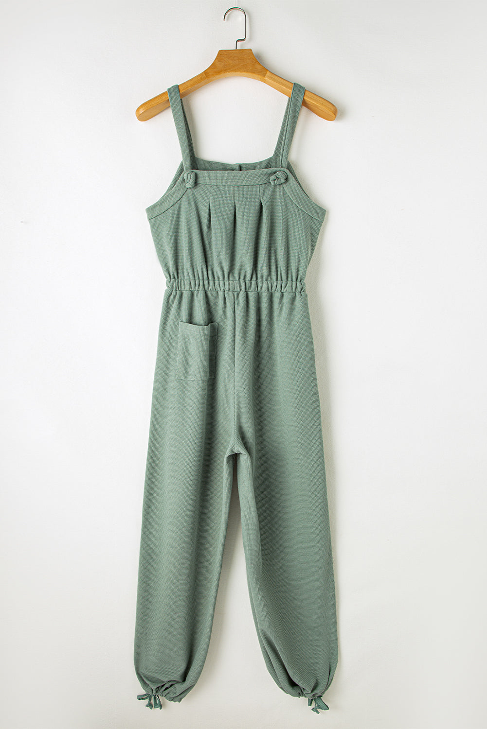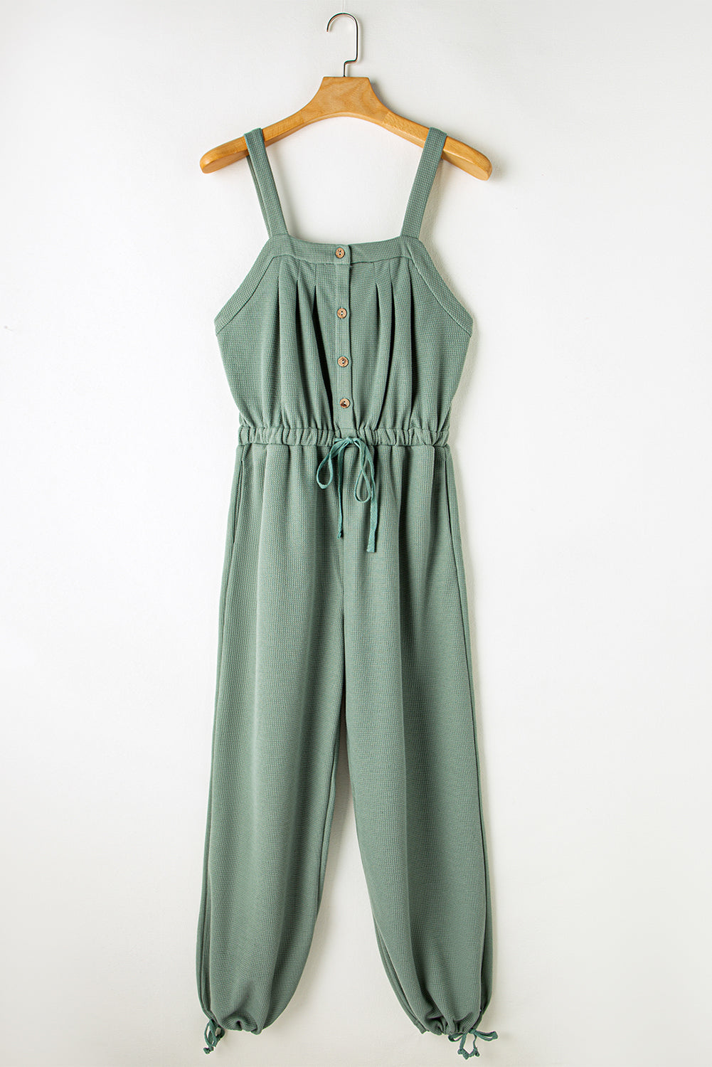 Black Knotted Straps Button Textured Drawstring Jumpsuit