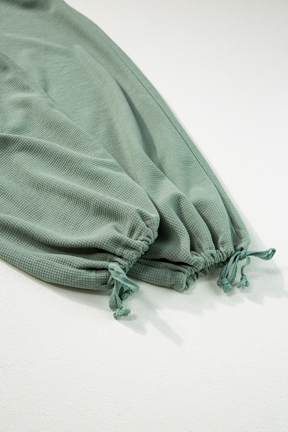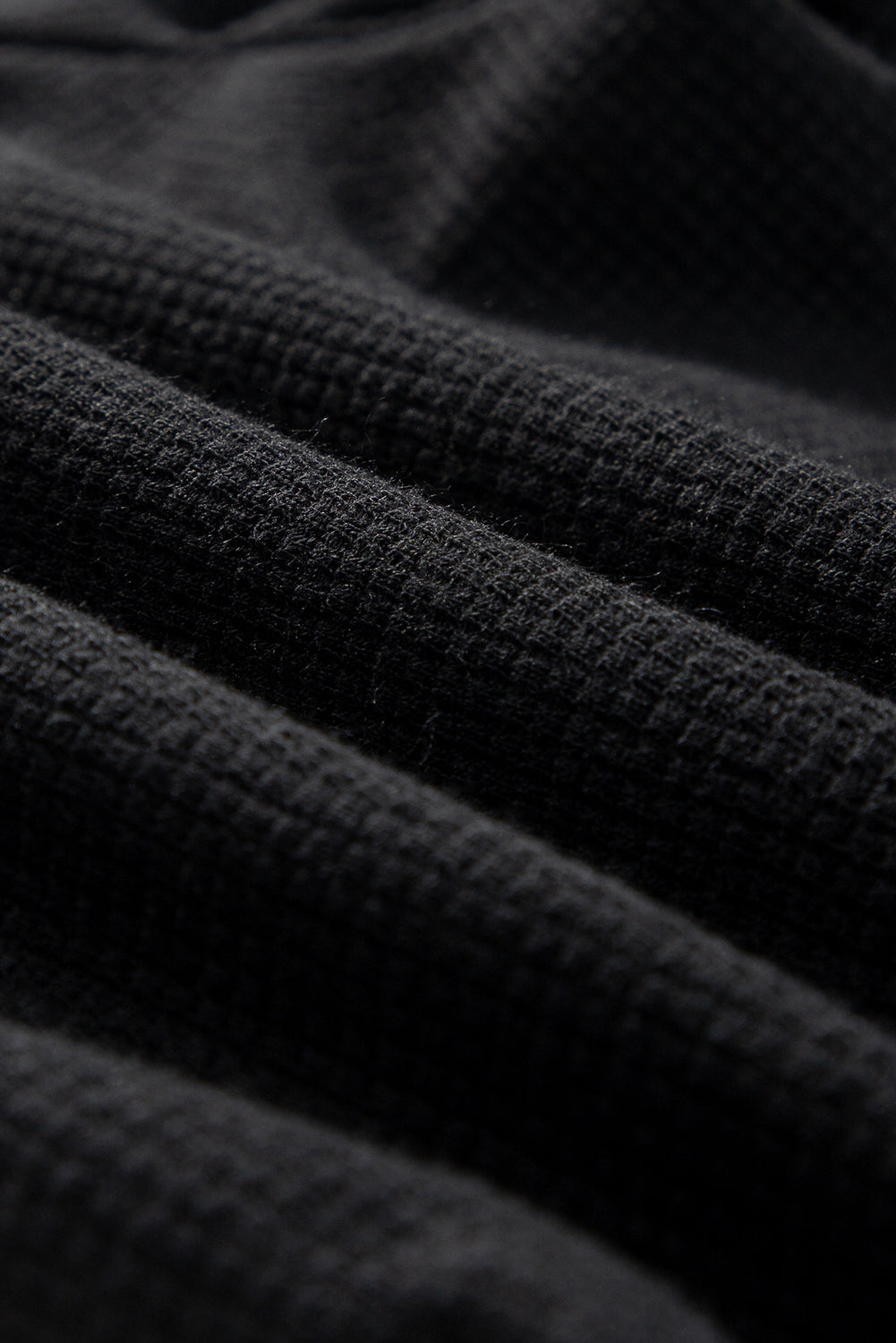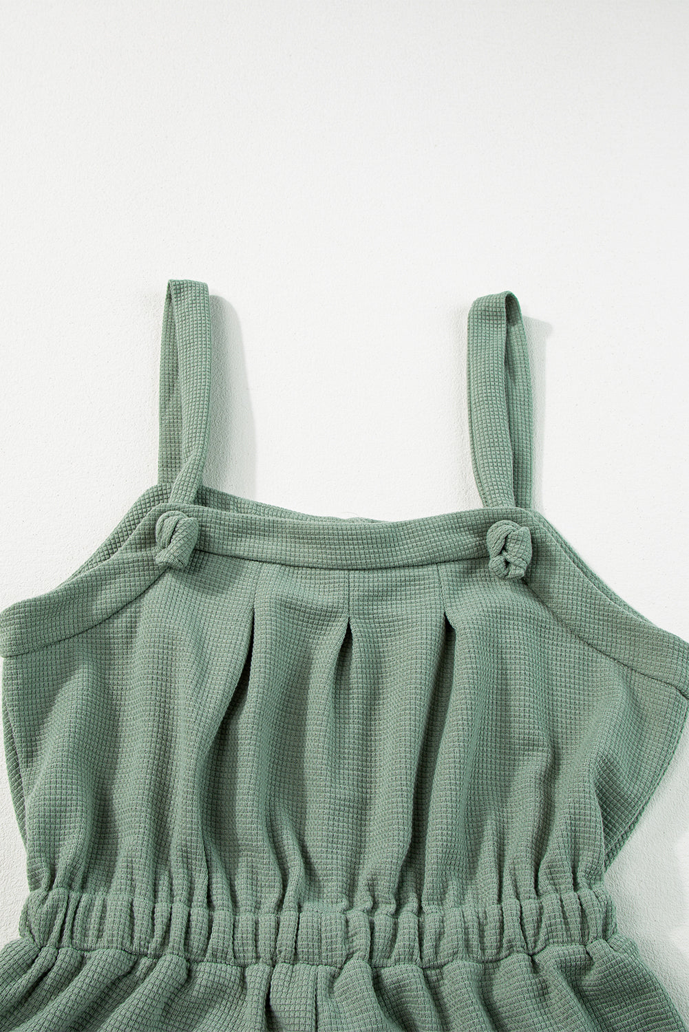 Black Knotted Straps Button Textured Drawstring Jumpsuit