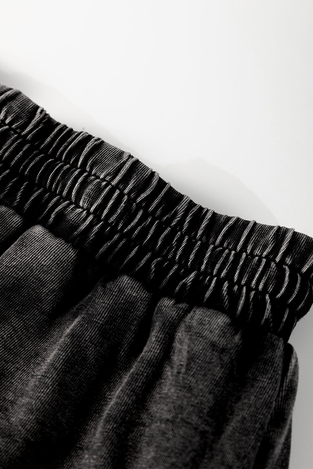 Black Mineral Wash French Terry High Waist Casual Shorts