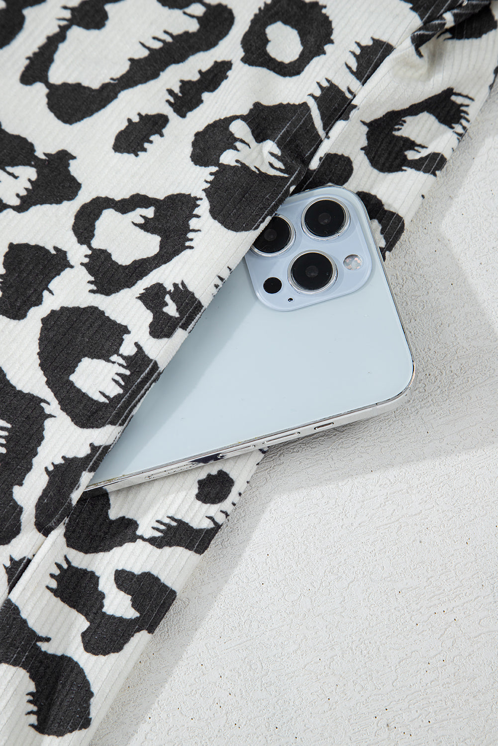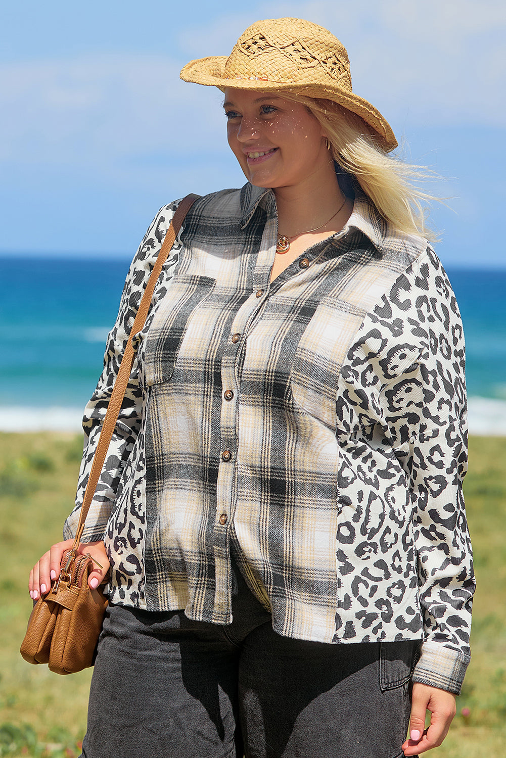 Black Plus Size Plaid Leopard Printed Patchwork Button Up Shacket