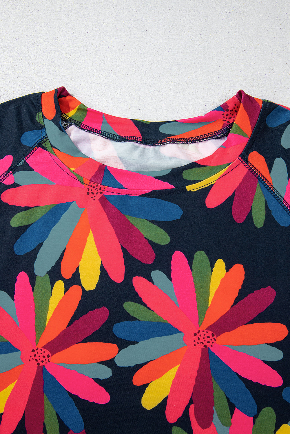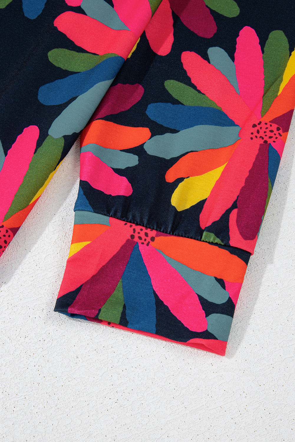 Black Plus Size Printed Long Sleeve and Pants Lounge Set