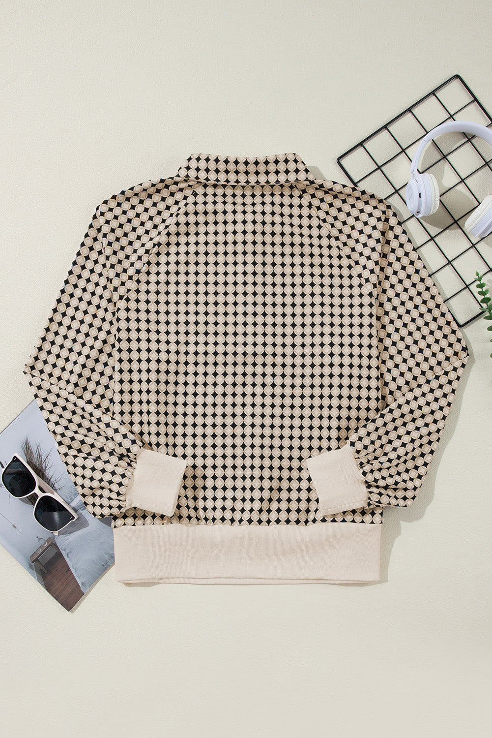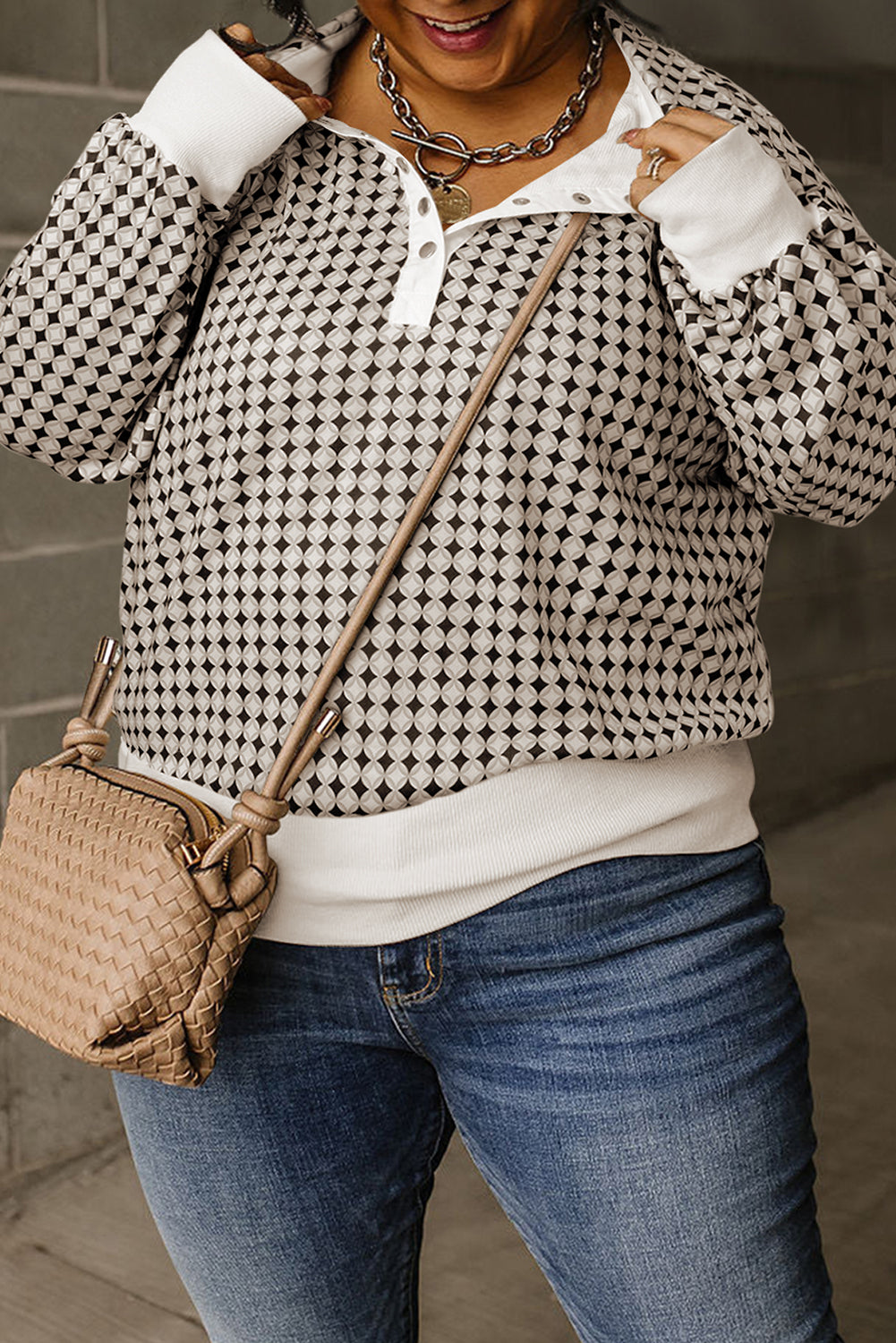 Black Plus Size Two Tone Contrast Collared Pullover Sweatshirt