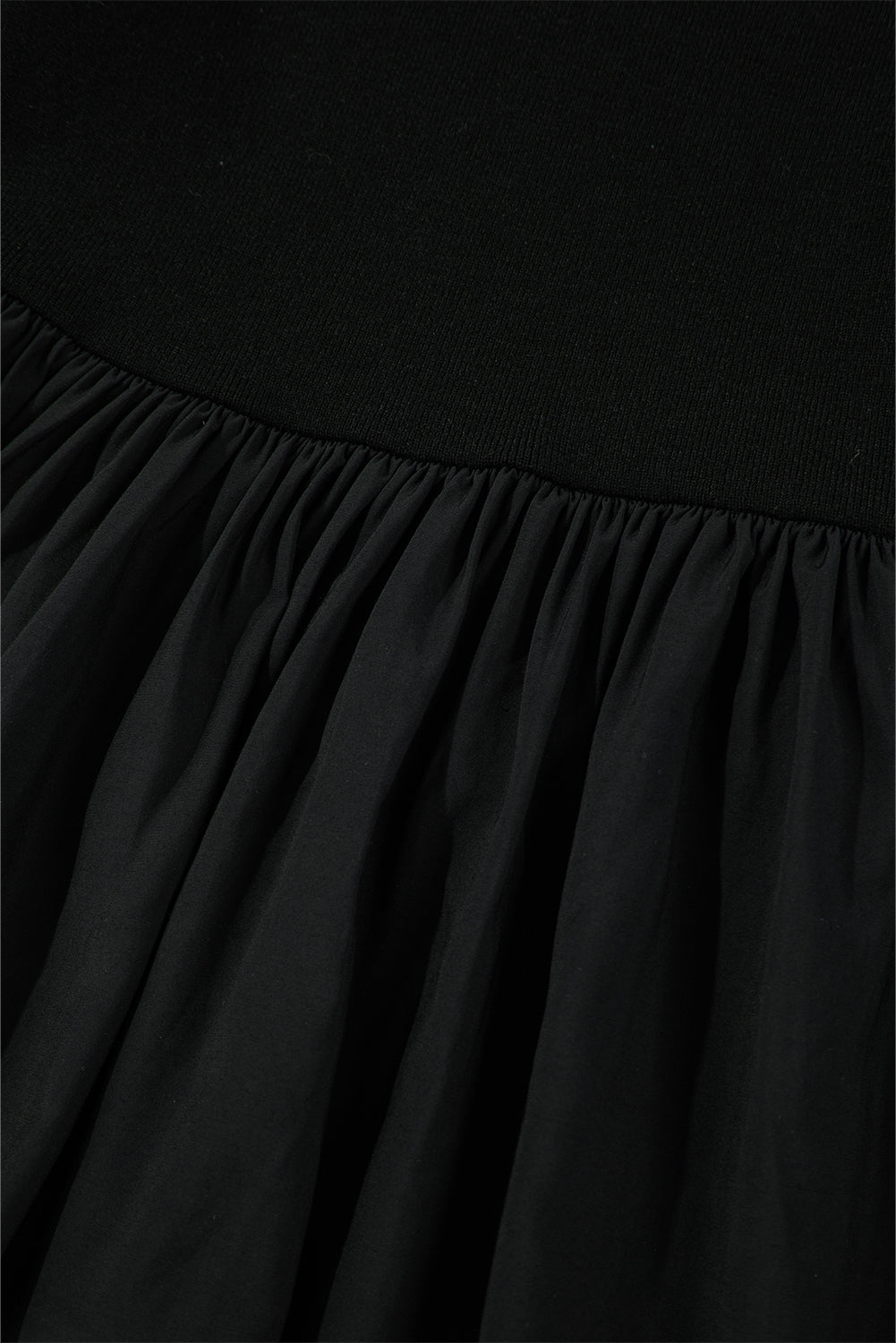 Black Ribbed Knit Long Sleeve Scoop Neck Peplum Patchwork Top