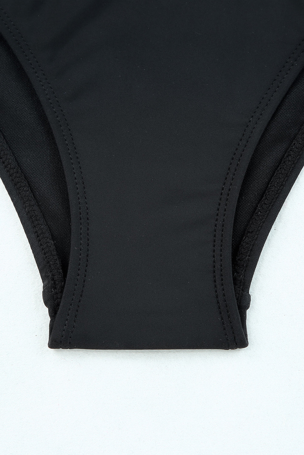 Black Rose Leopard Mesh Trim 2pcs Bikini Swimsuit