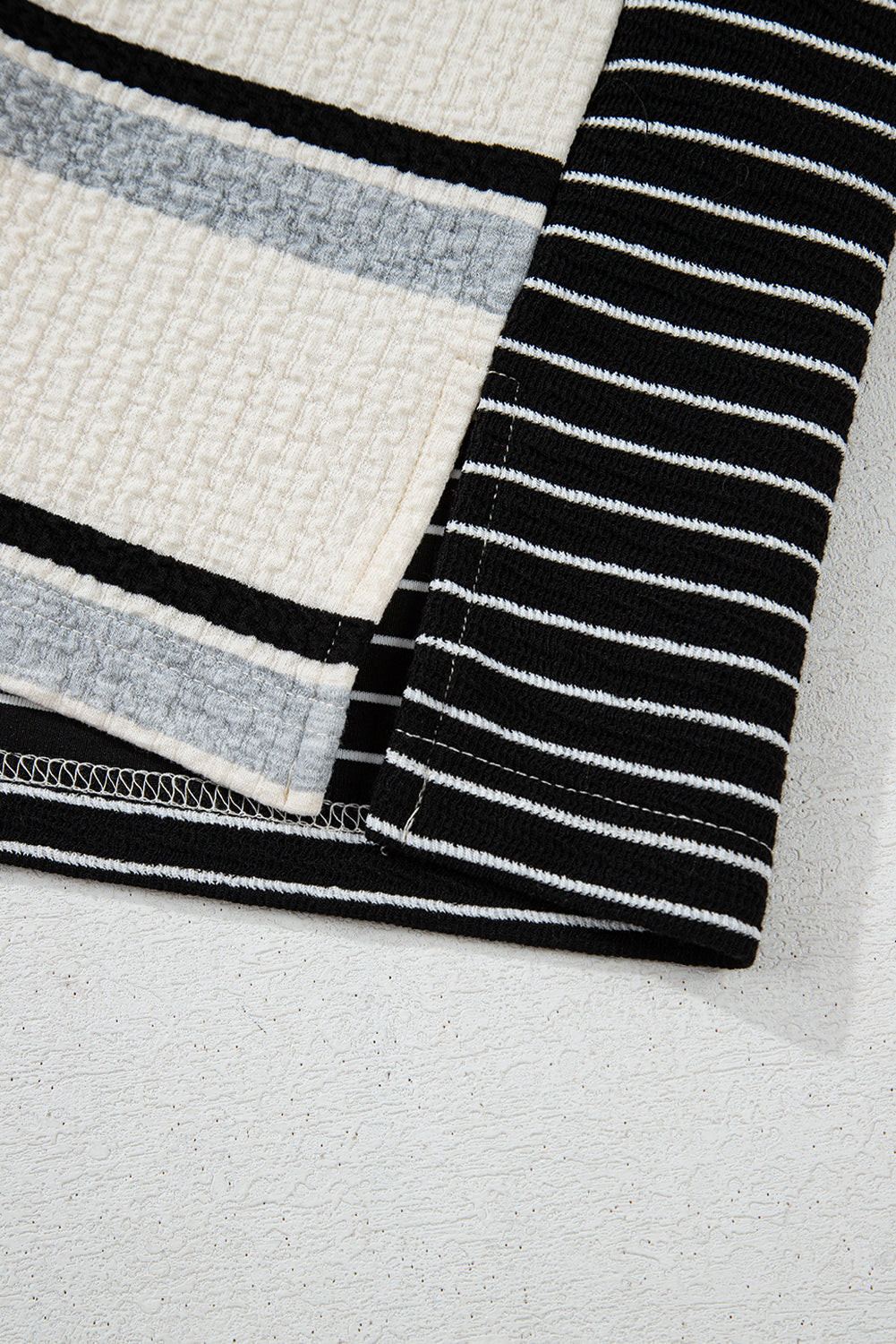 Black Stripe Colorblock Knit Henley Collar Shift Long Sleeve Mini Dress