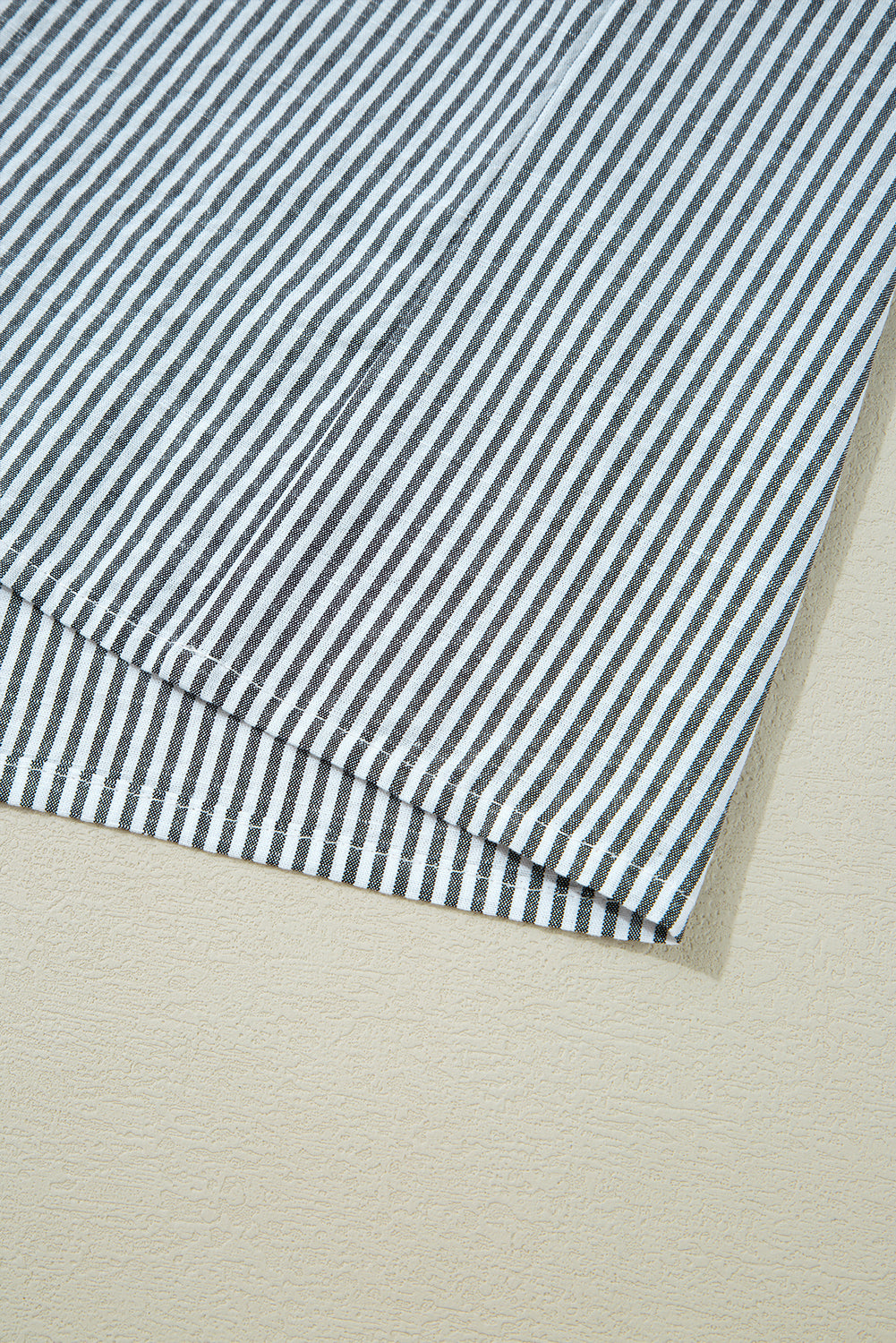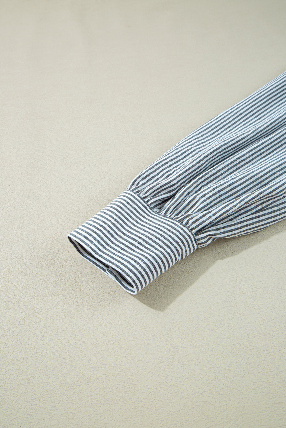Black Stripe Floral Patchwork Tied V Neck Shift Long Sleeve Mini Dress