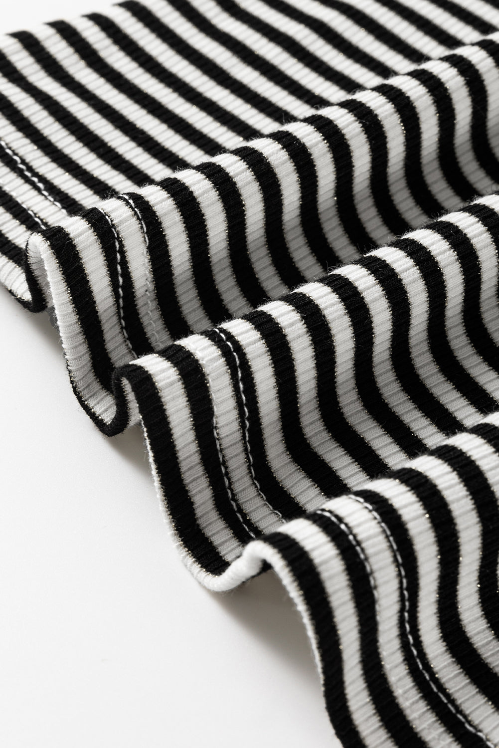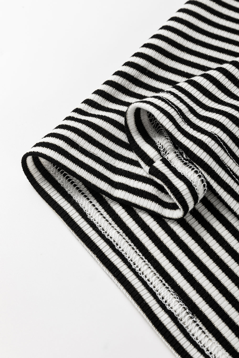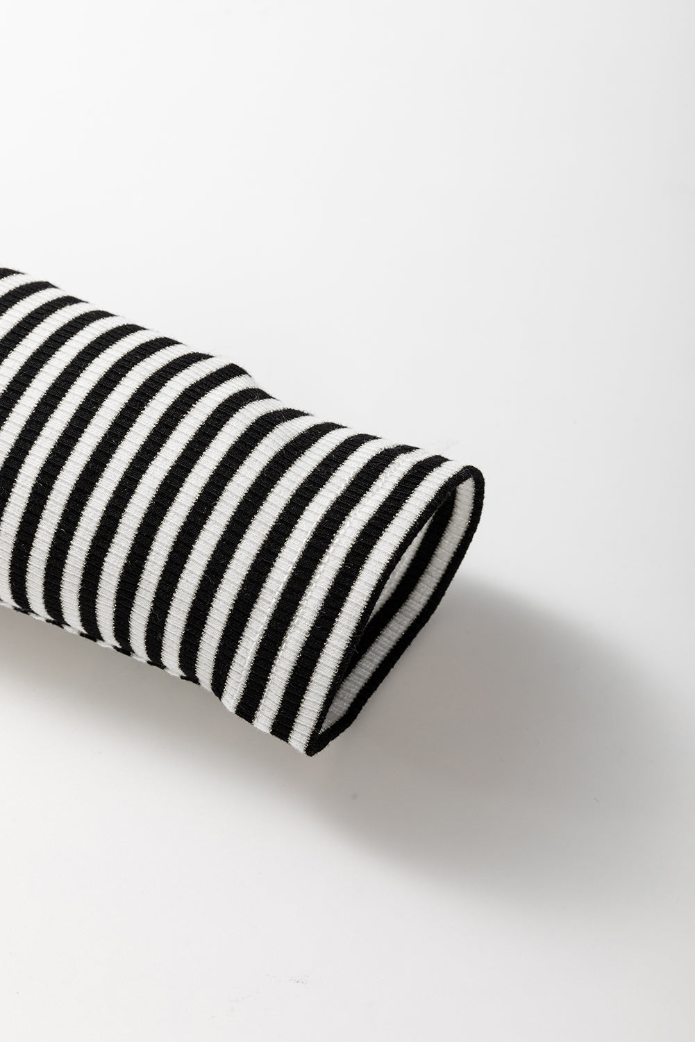 Black Stripe Knit Mock Neck Long Sleeve Slim Top