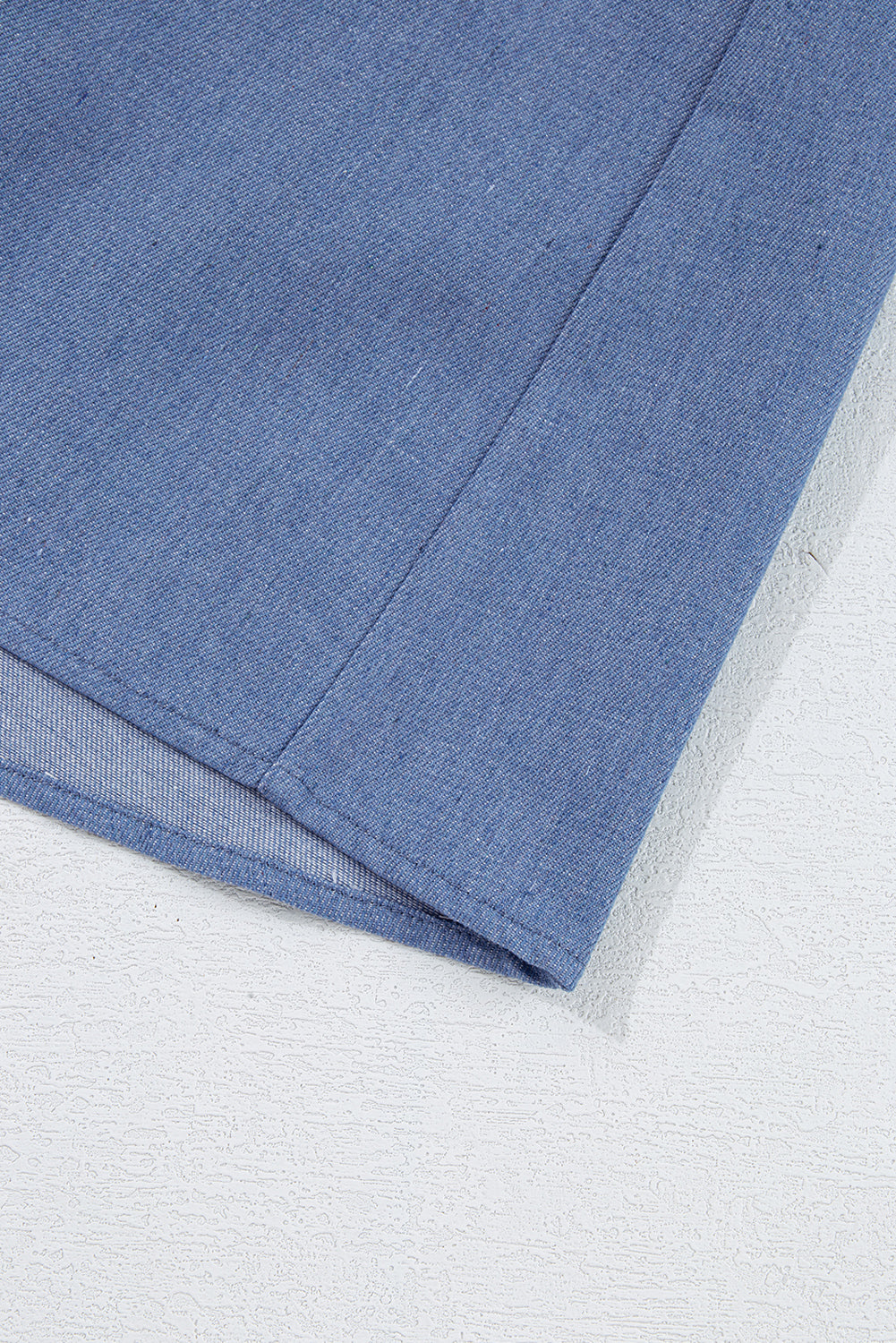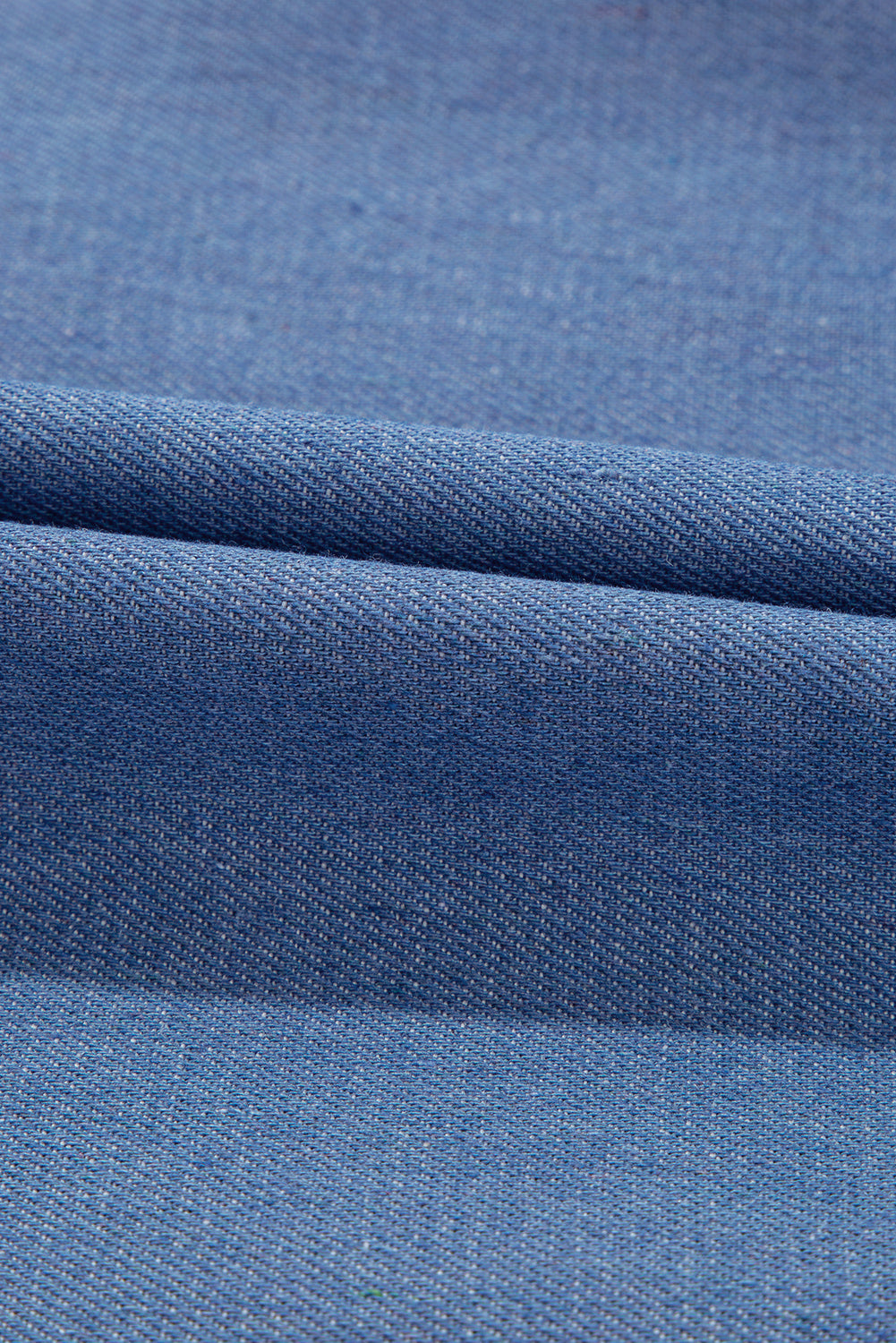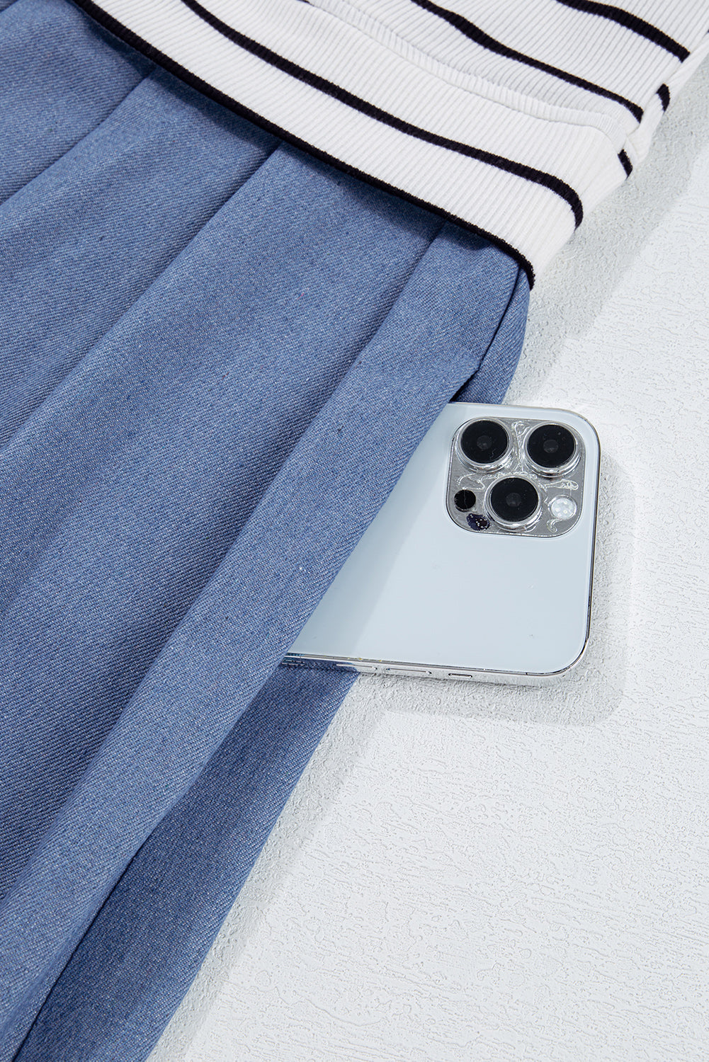 Black Stripe Ruffle Denim Patchwork Round Neck Mini Dress