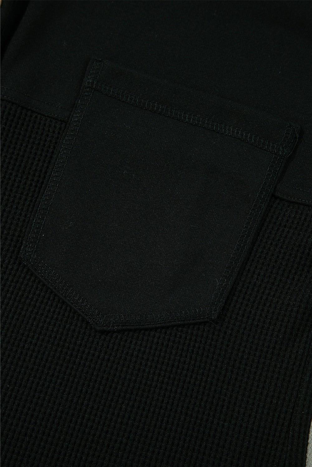 Black Waffle Knit Patchwork Buttoned Oversized Shacket
