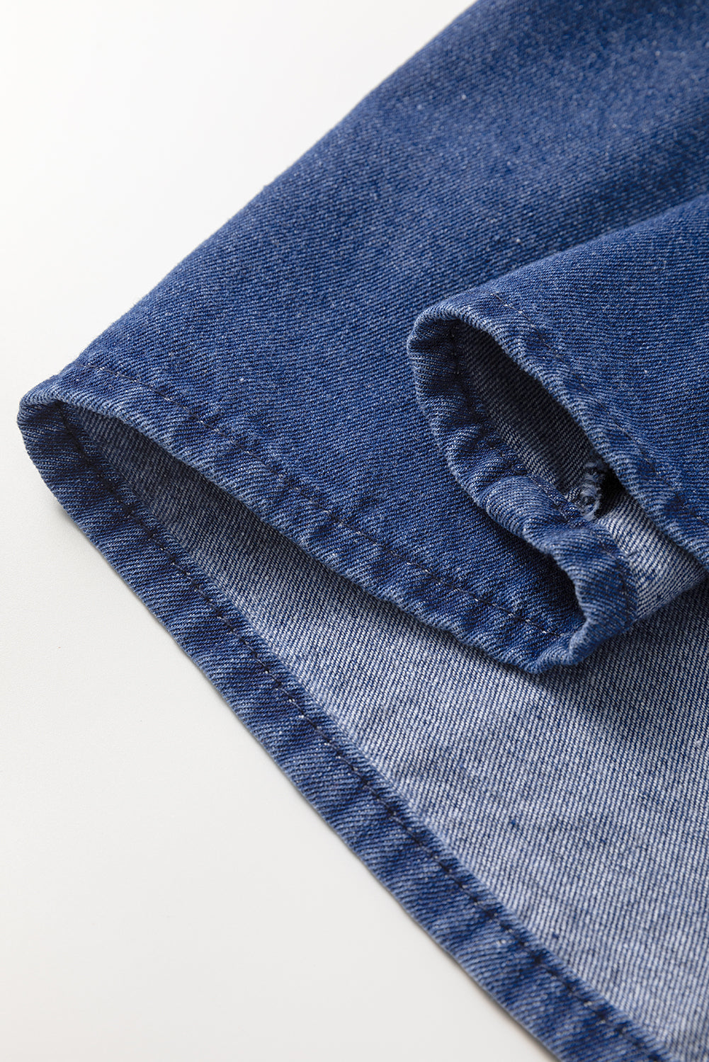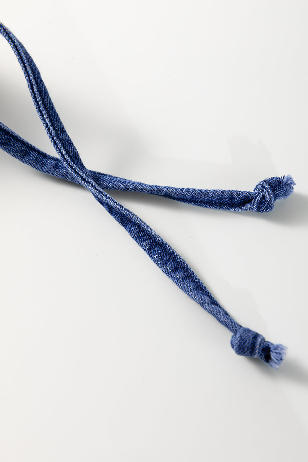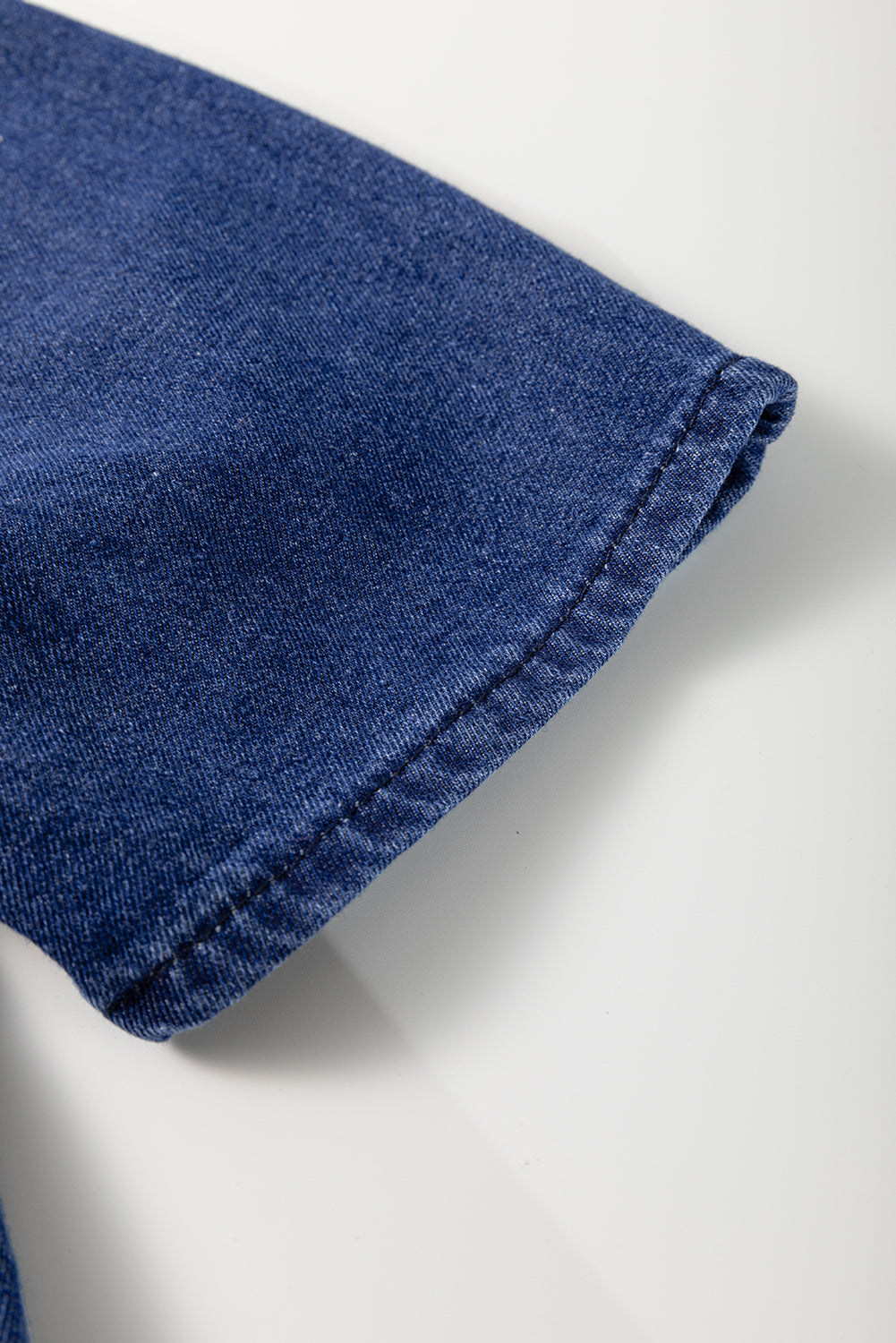 Blue Drawstring High Waist Puff Sleeve Denim Mini Dress