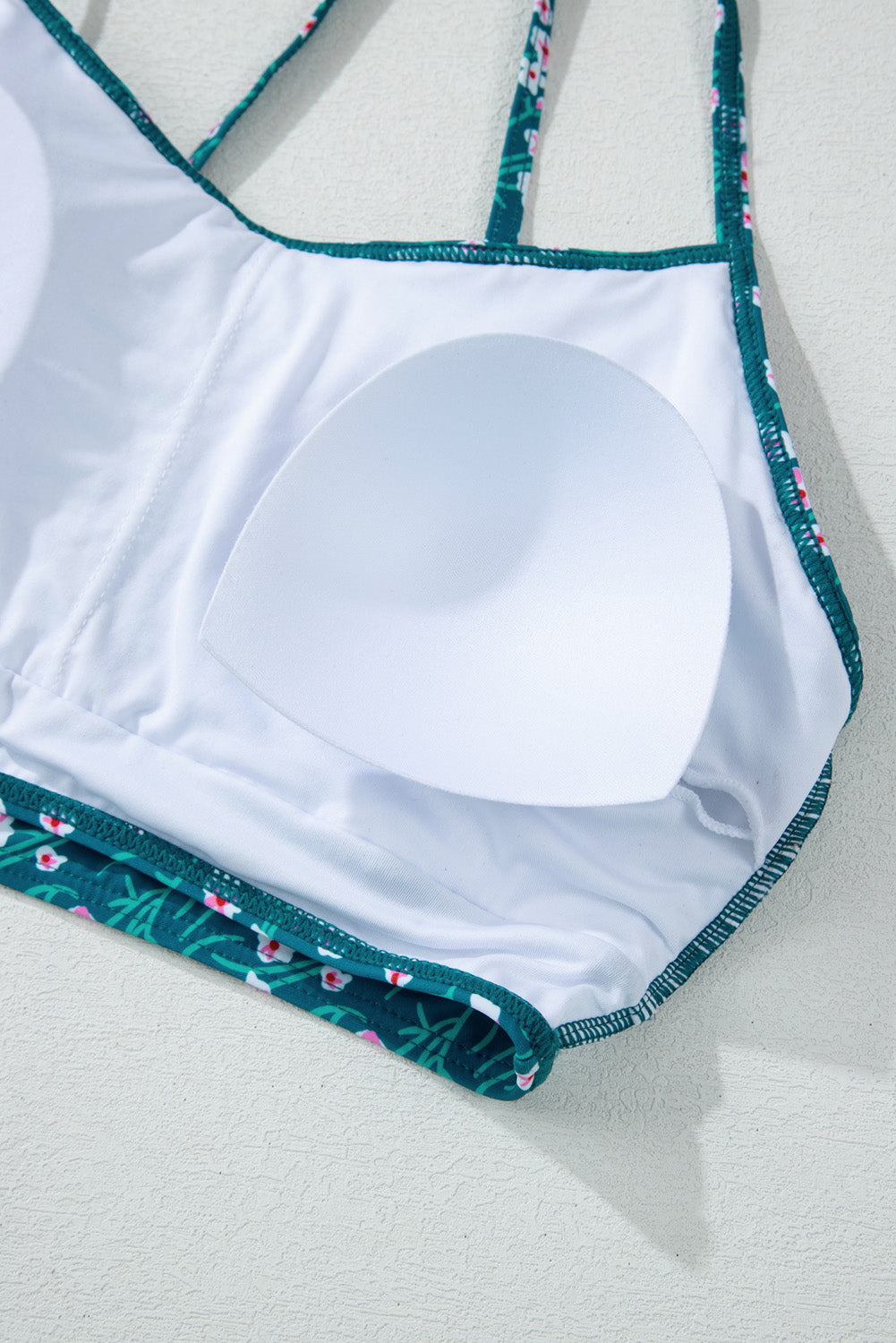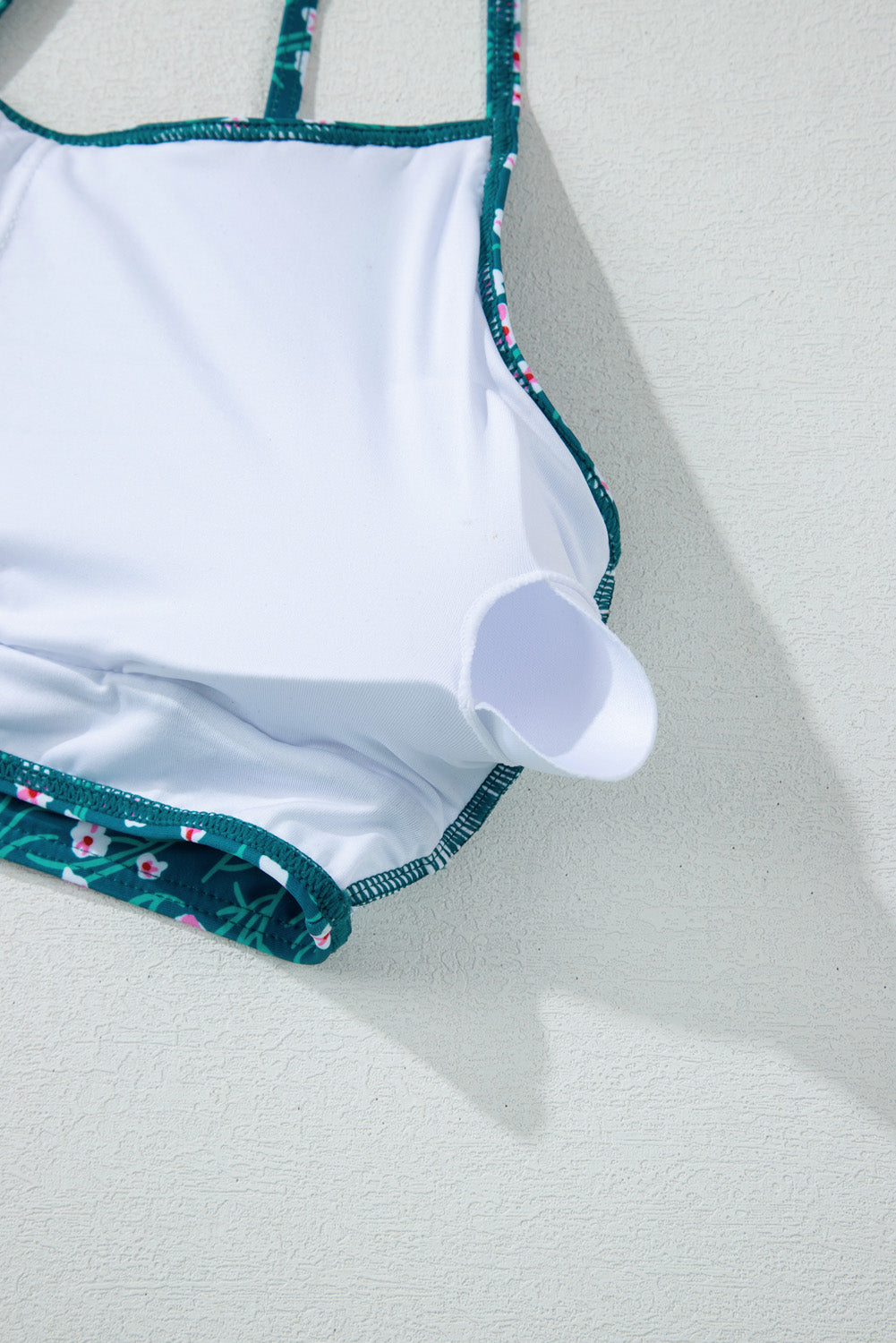 Blue Floral Print Smocked Cute Bikini Set