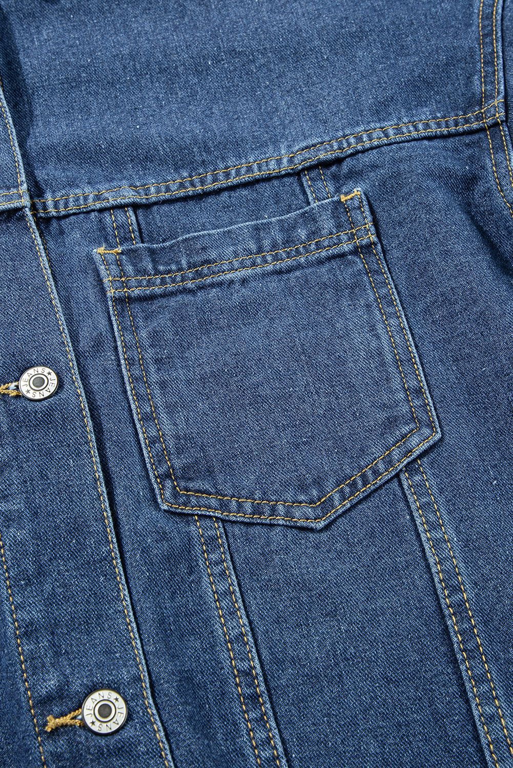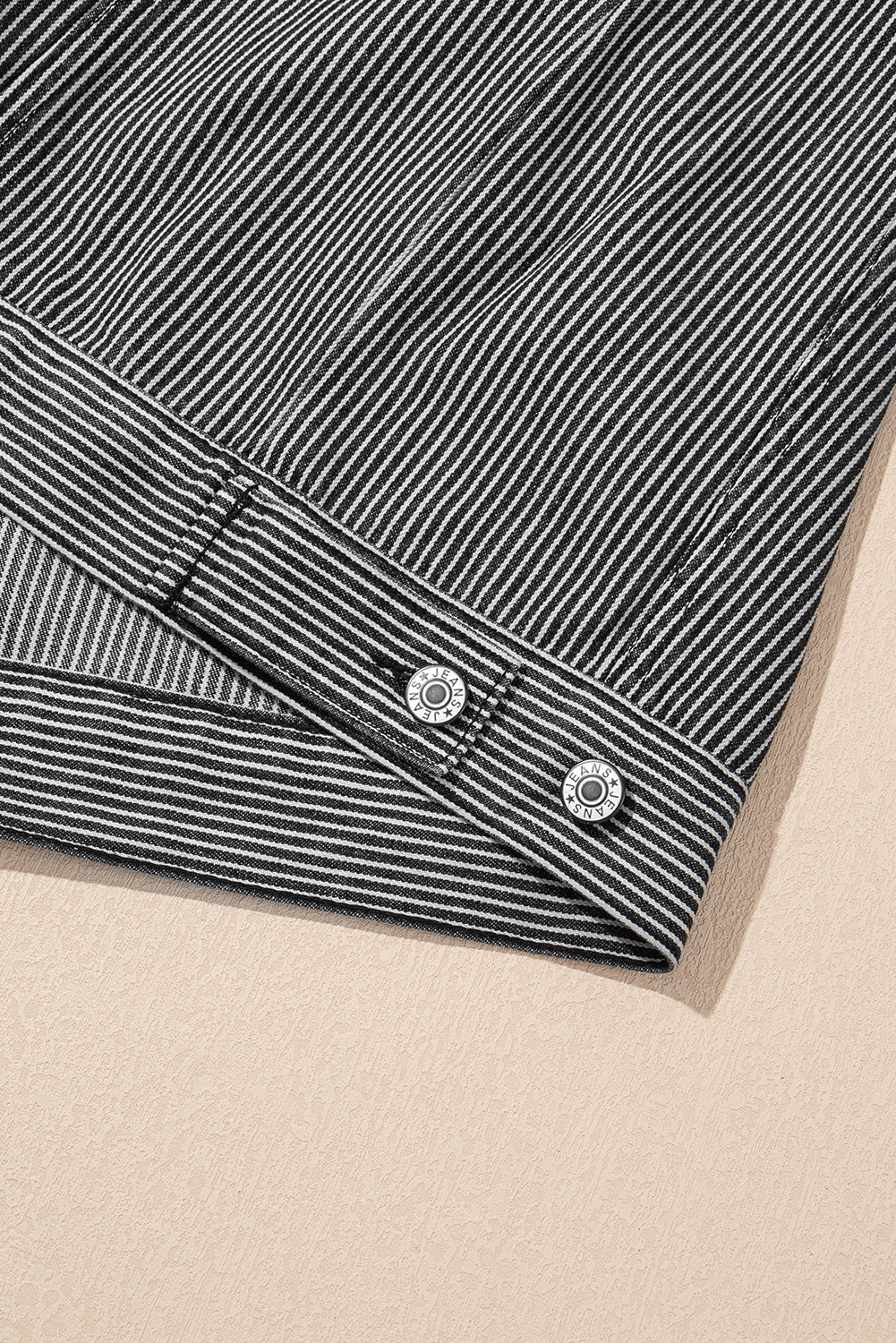 Blue Stripe Washed Oversize Pocketed Denim Jacket