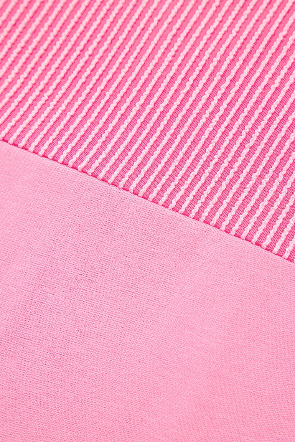 Bonbon Corded Patchwork Pocketed Plus Size T Shirt