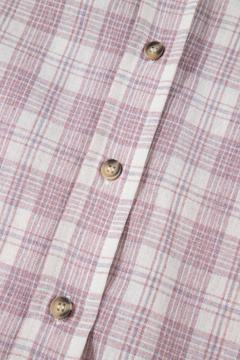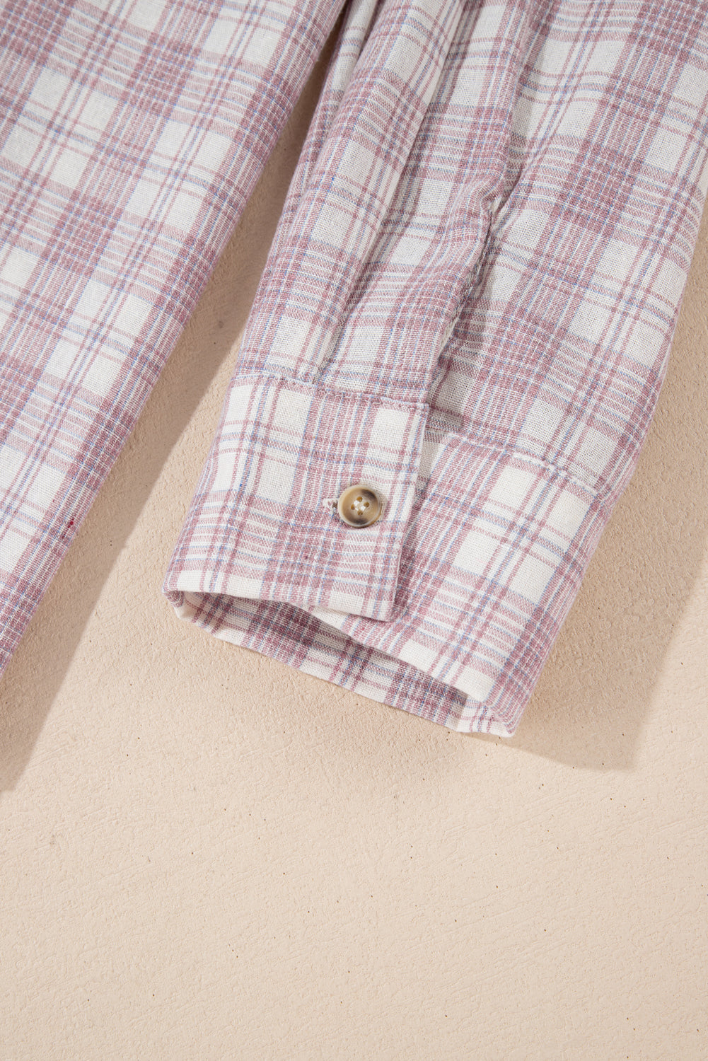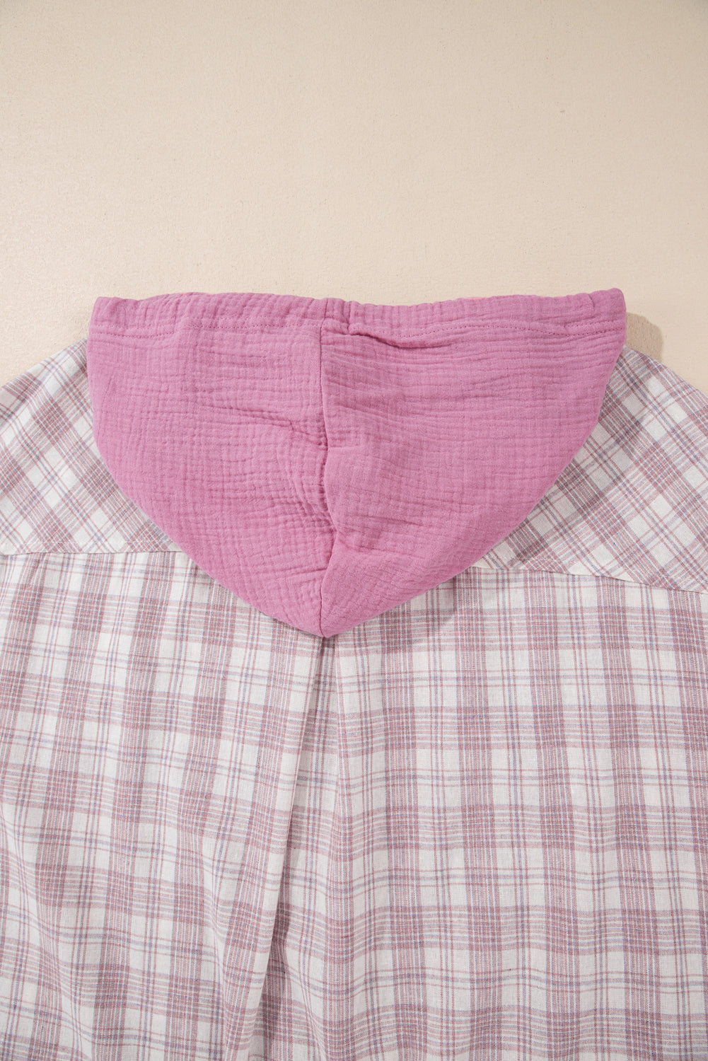 Bonbon Plaid Print Drawstring Hooded Button-up Plus Size Shirt