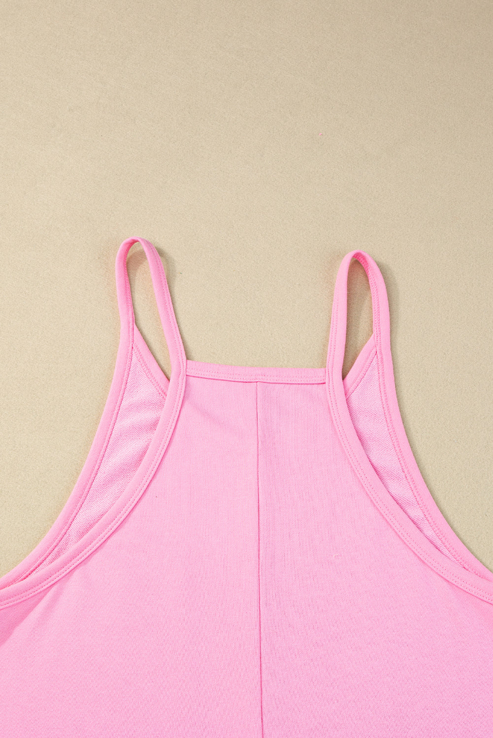 Bright Green Sleeveless Pocketed V Neck Jersey Romper