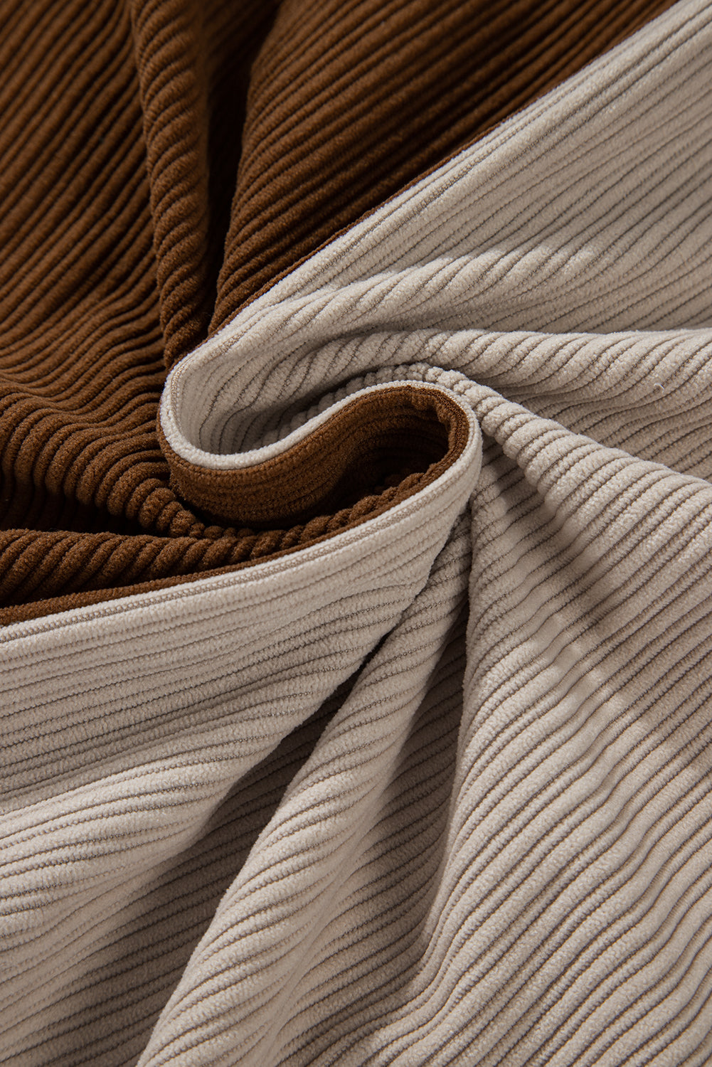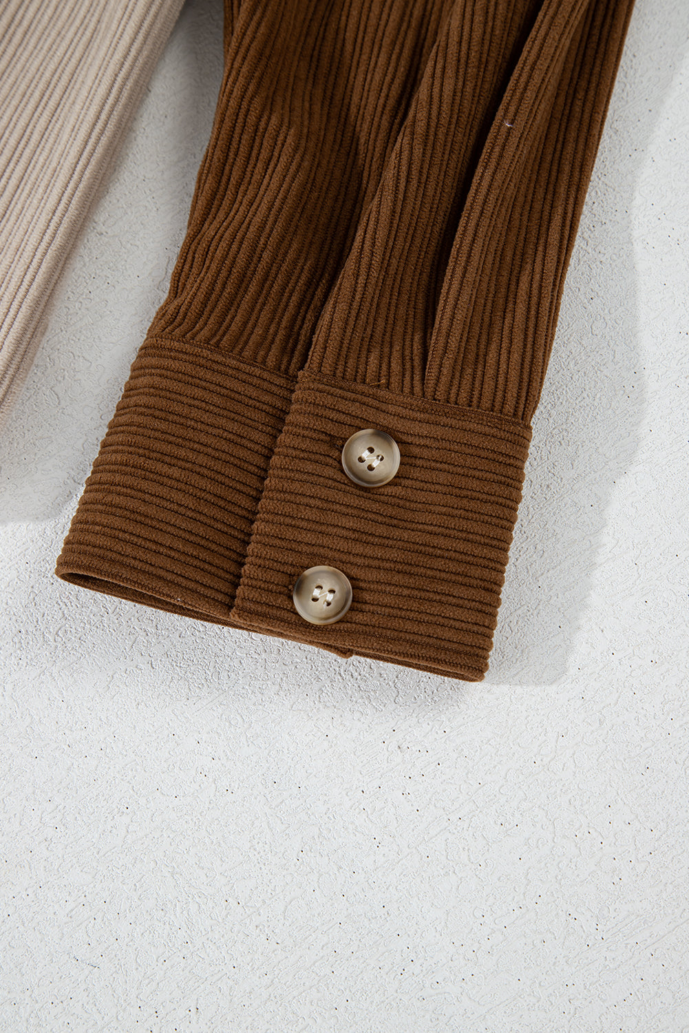 Brown Color Block Chest Pockets Buttoned Corduroy Shacket