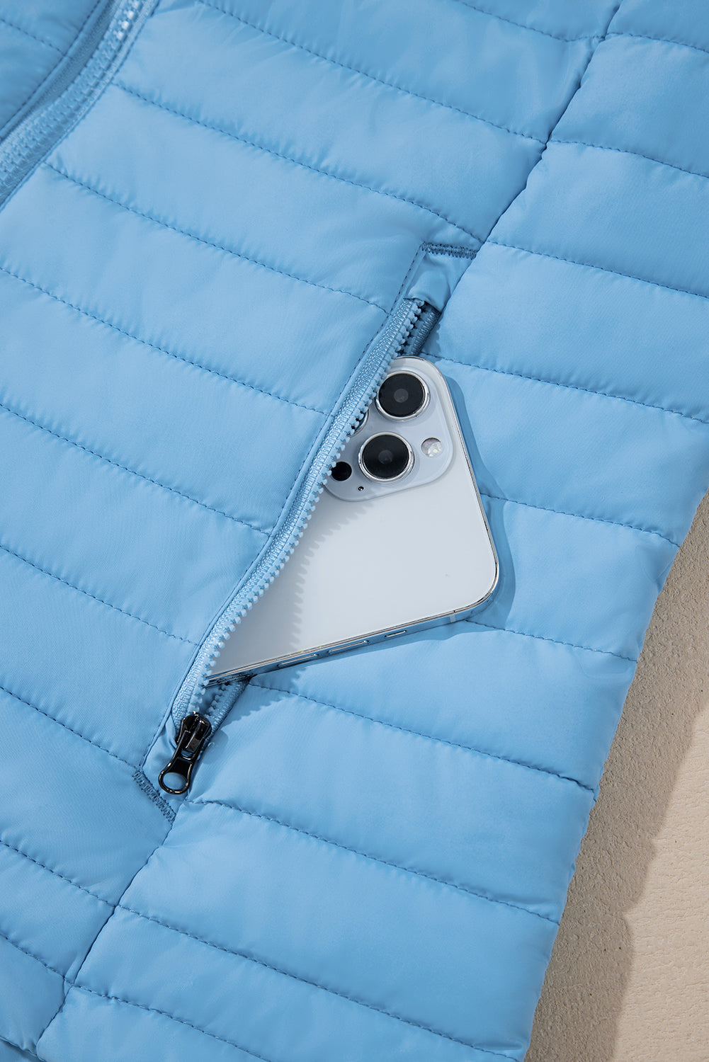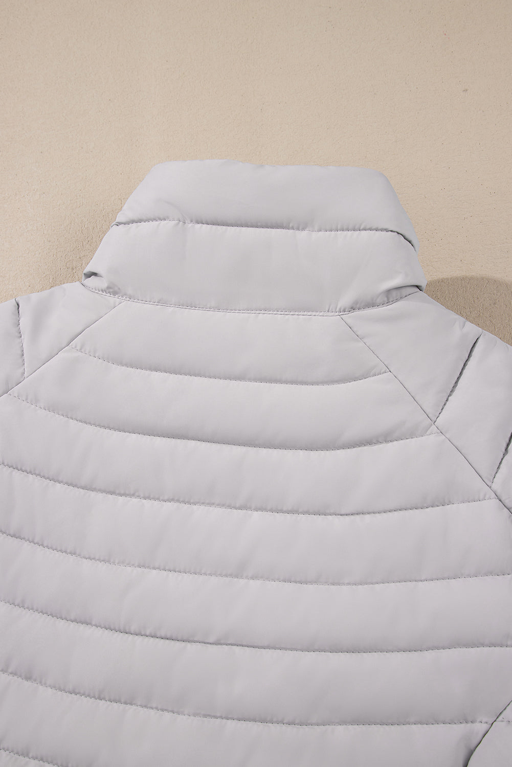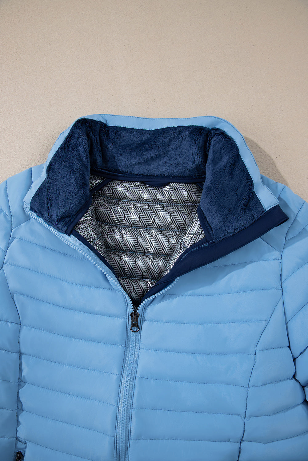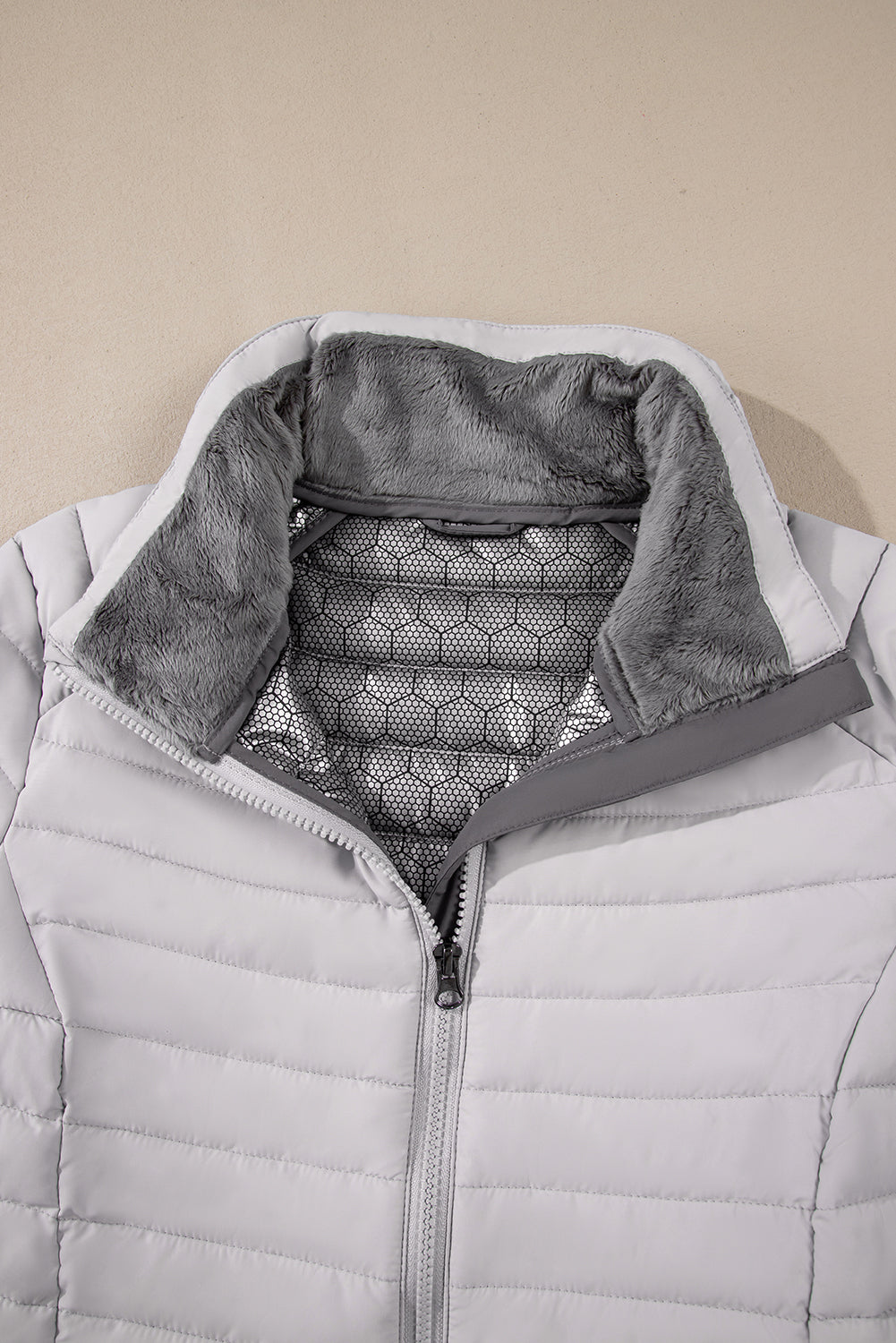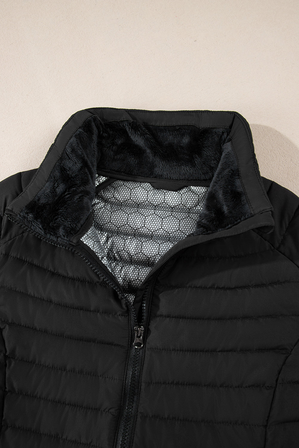 Burgundy Solid Color Quilted Zip-up Puffer Jacket