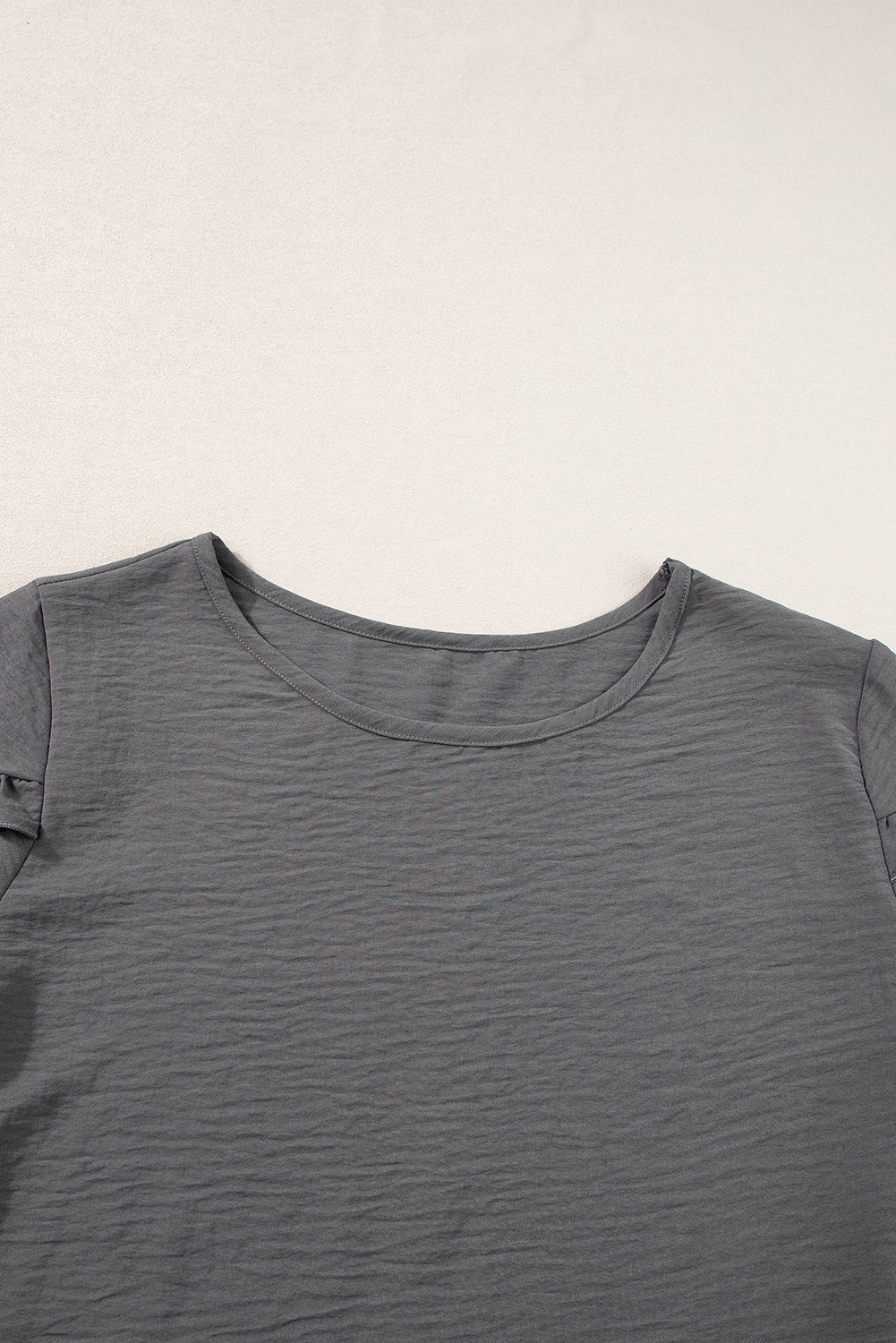Dark Grey Ruffled Short Sleeve Plus Size Top