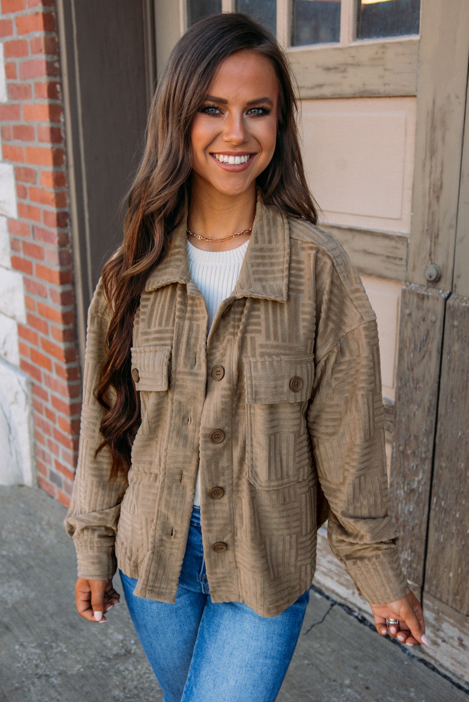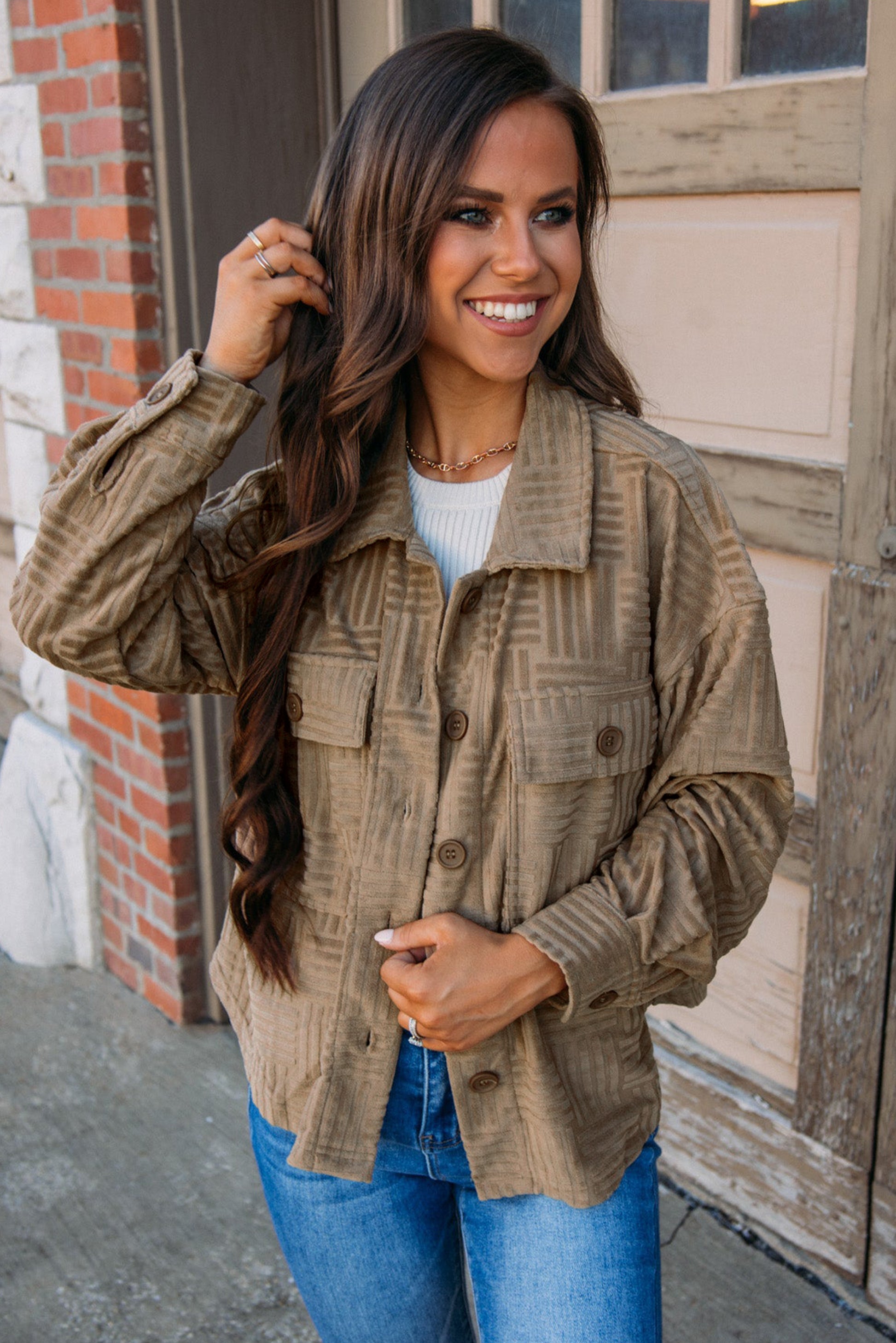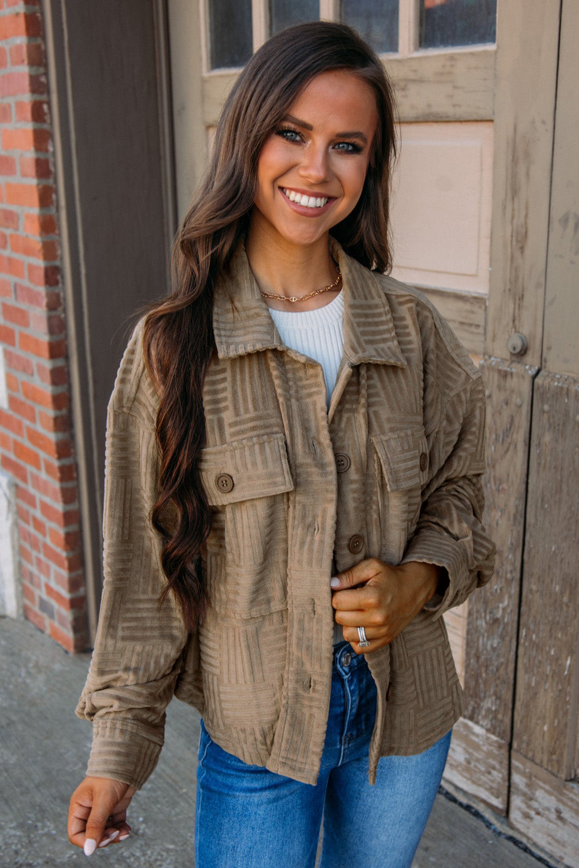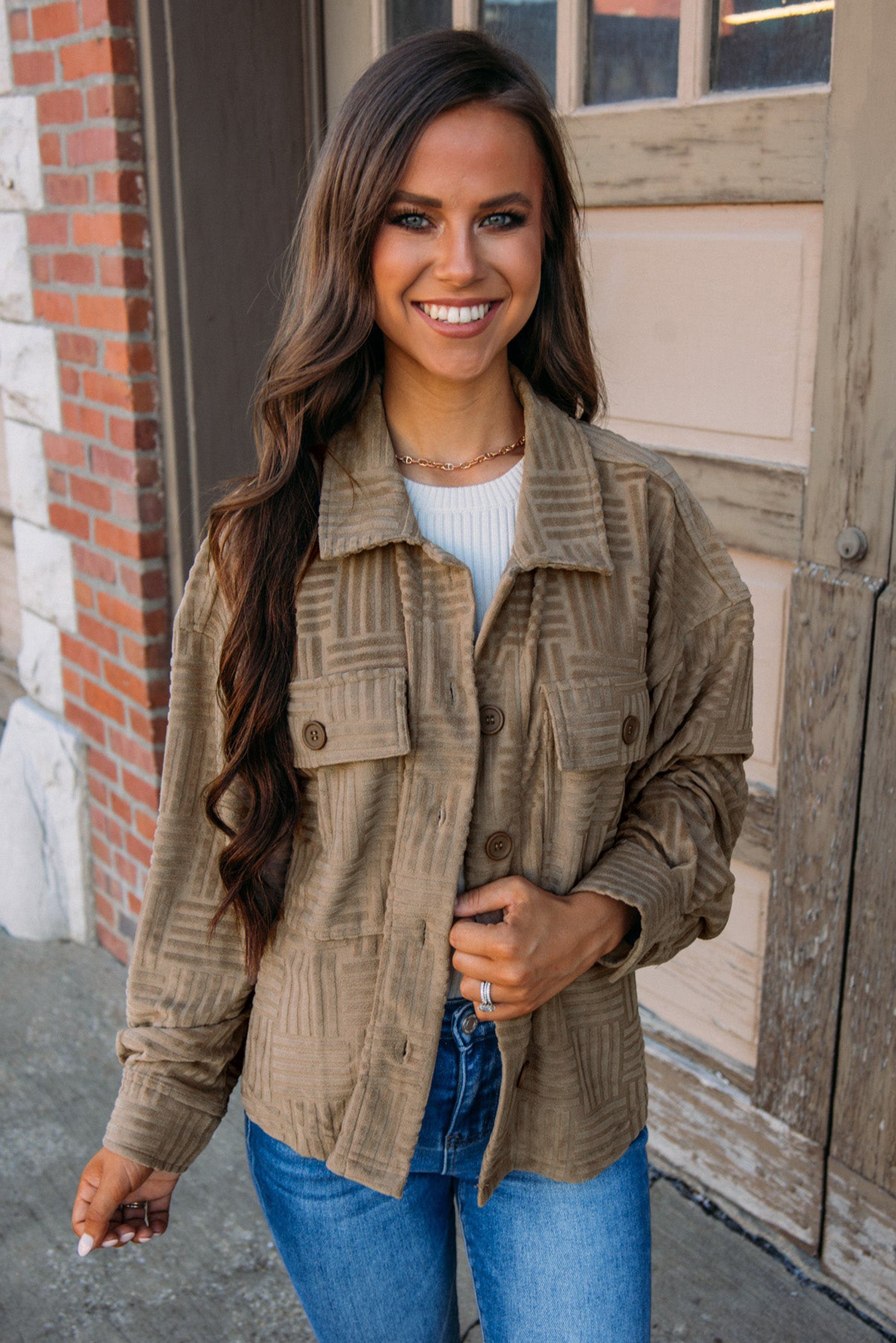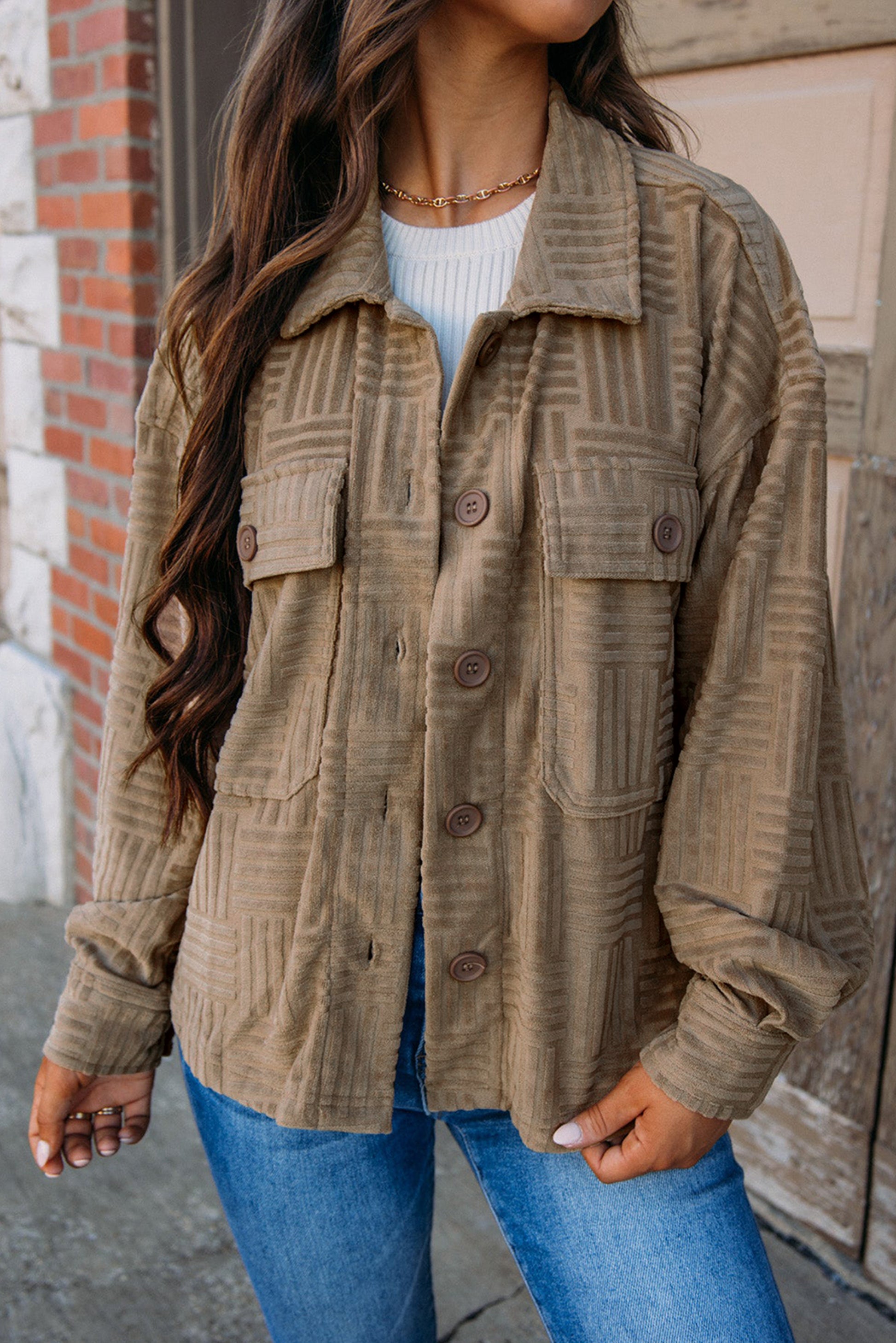 Dark Khaki Textured Chest Pocket Button-up Shacket