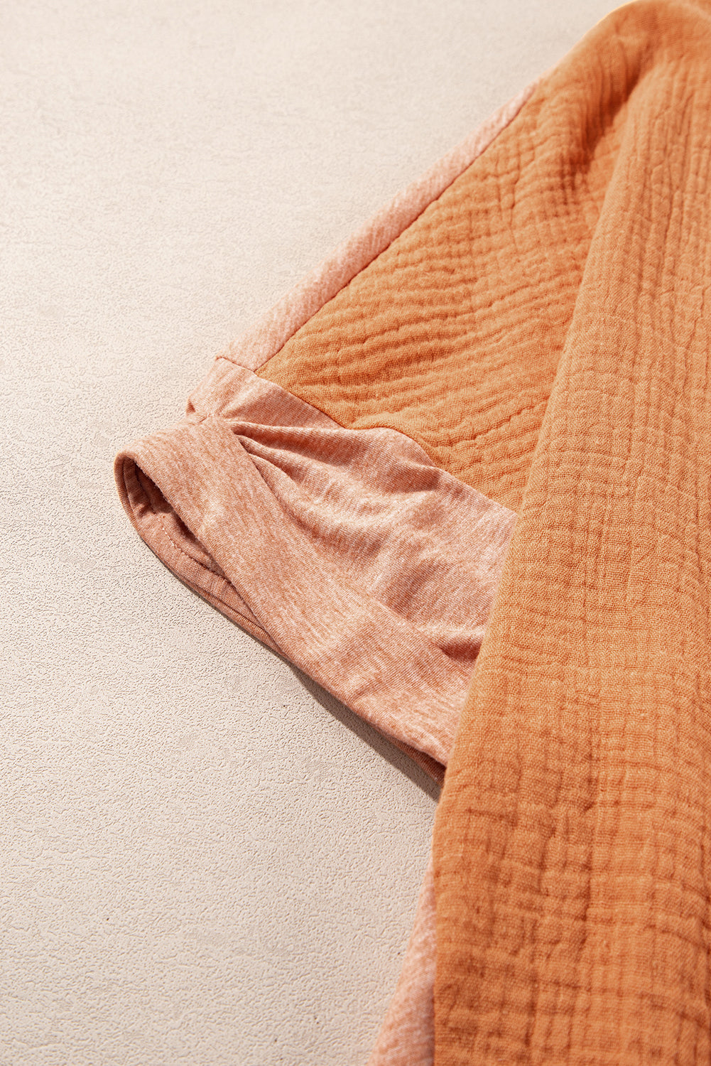 Desert Gold Stud Heart Patch Textured Front Dolman Top