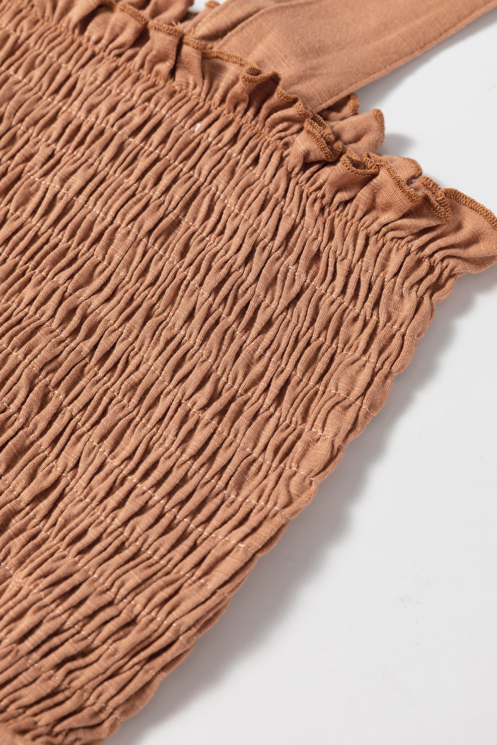 Dusty Pink Ruffled Shirred Wide Leg Sleeveless Jumpsuit