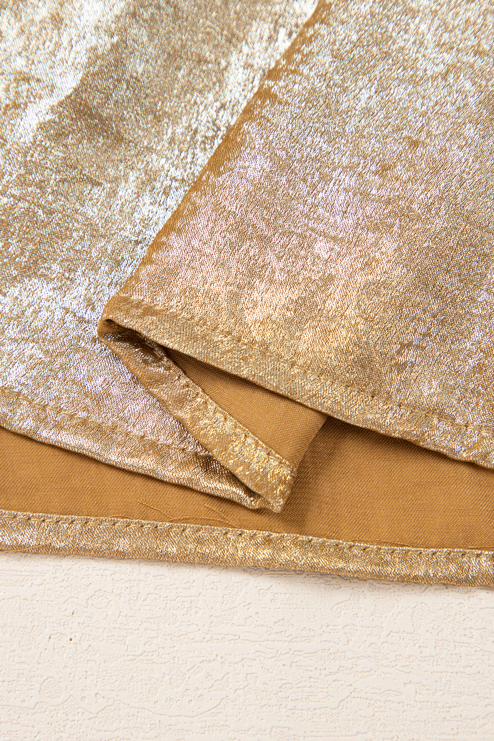 The solid gold color pairs easily with various bottoms for versatile styling.