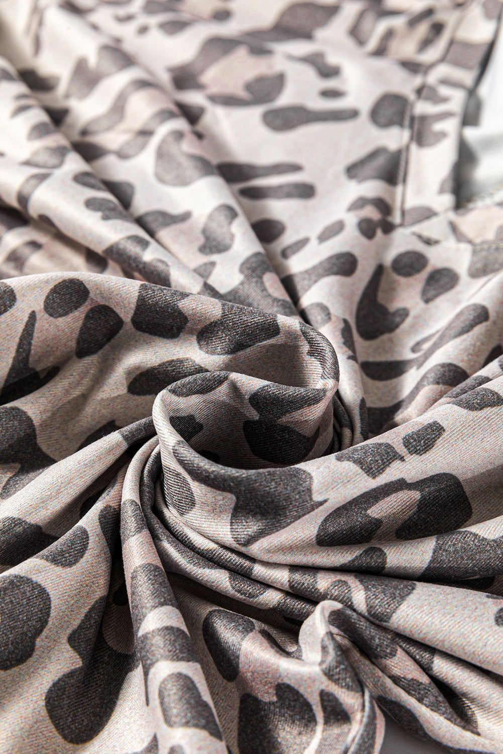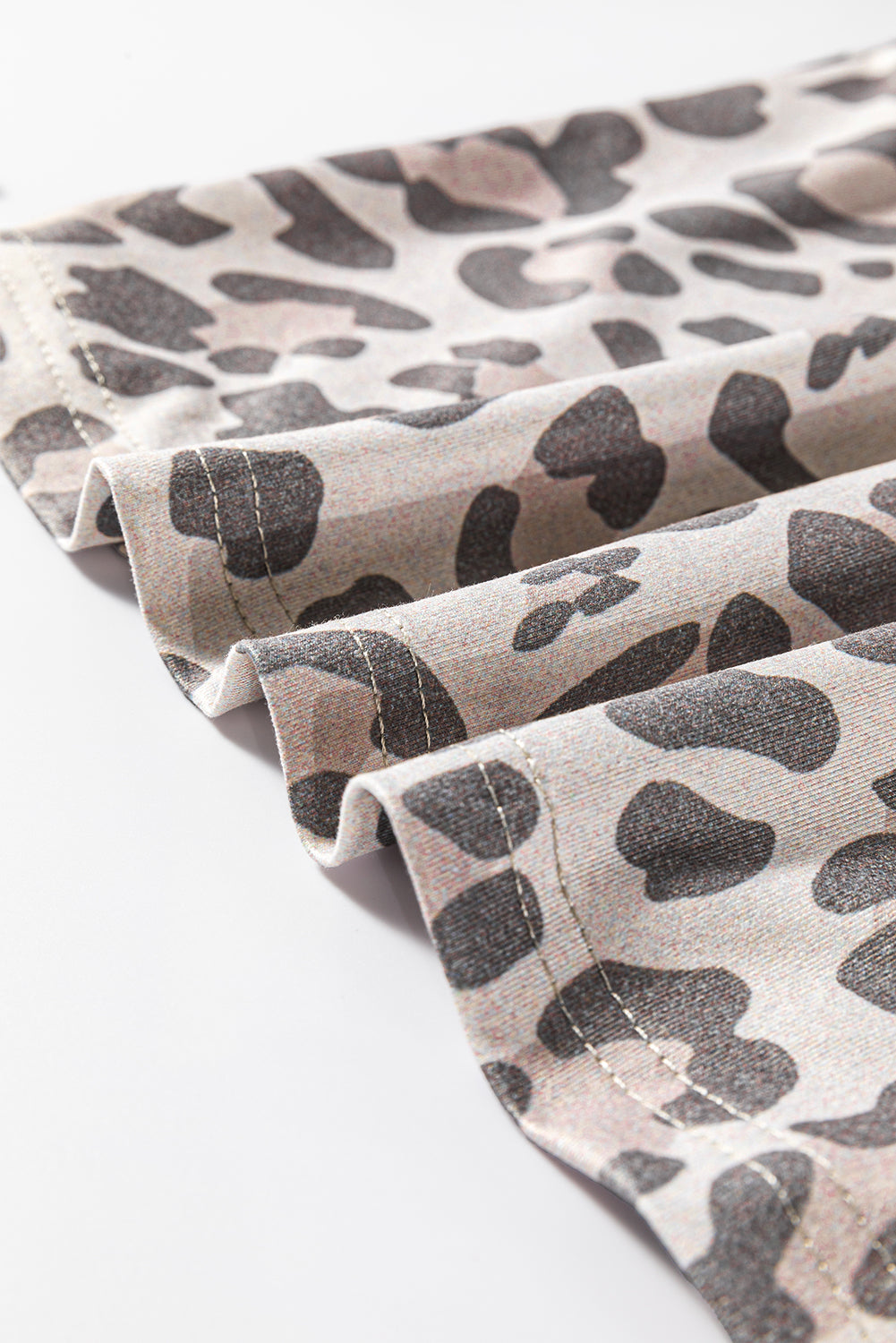 Gray Leopard Print V Neck Loose Fit Mini Dress