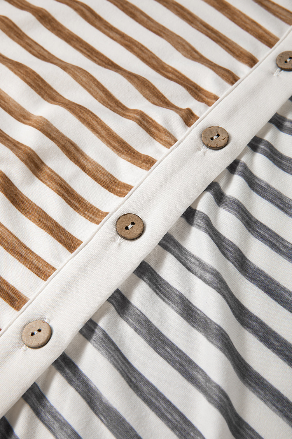 Gray Stripe Plus Size Color Block Buttoned Sleeveless Wide Leg Jumpsuit