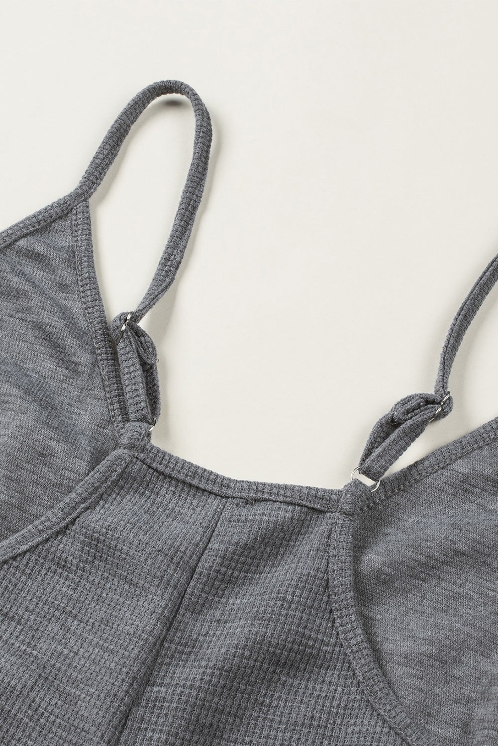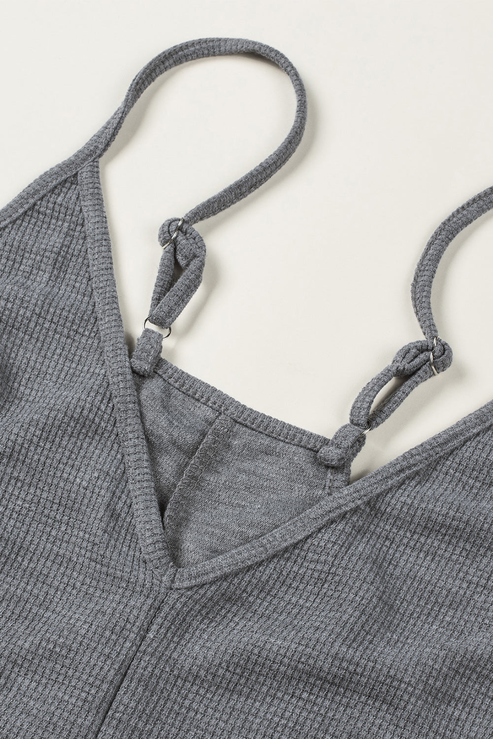 Gray Textured Sleeveless V-Neck Pocketed Casual Jumpsuit