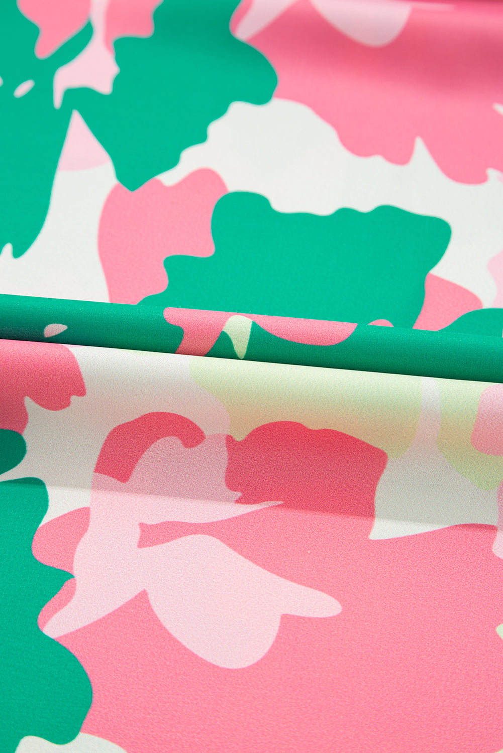 Green Abstract Print Frilly Neck Ruched Short Sleeve Blouse