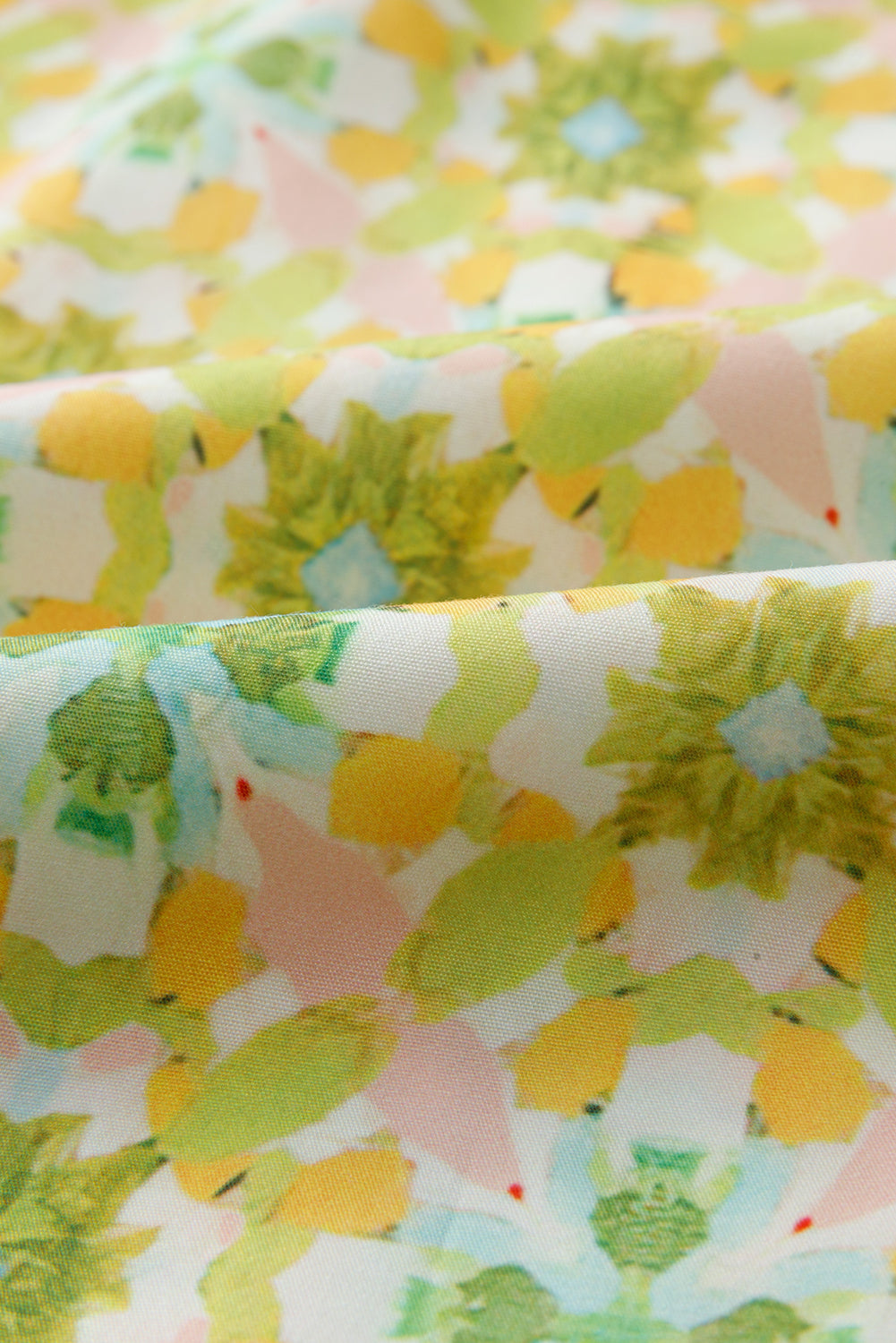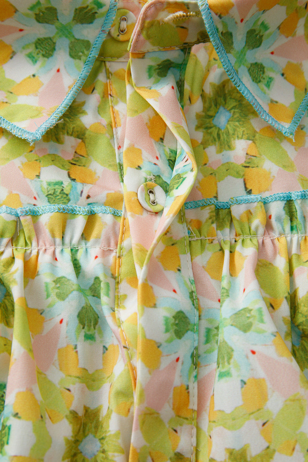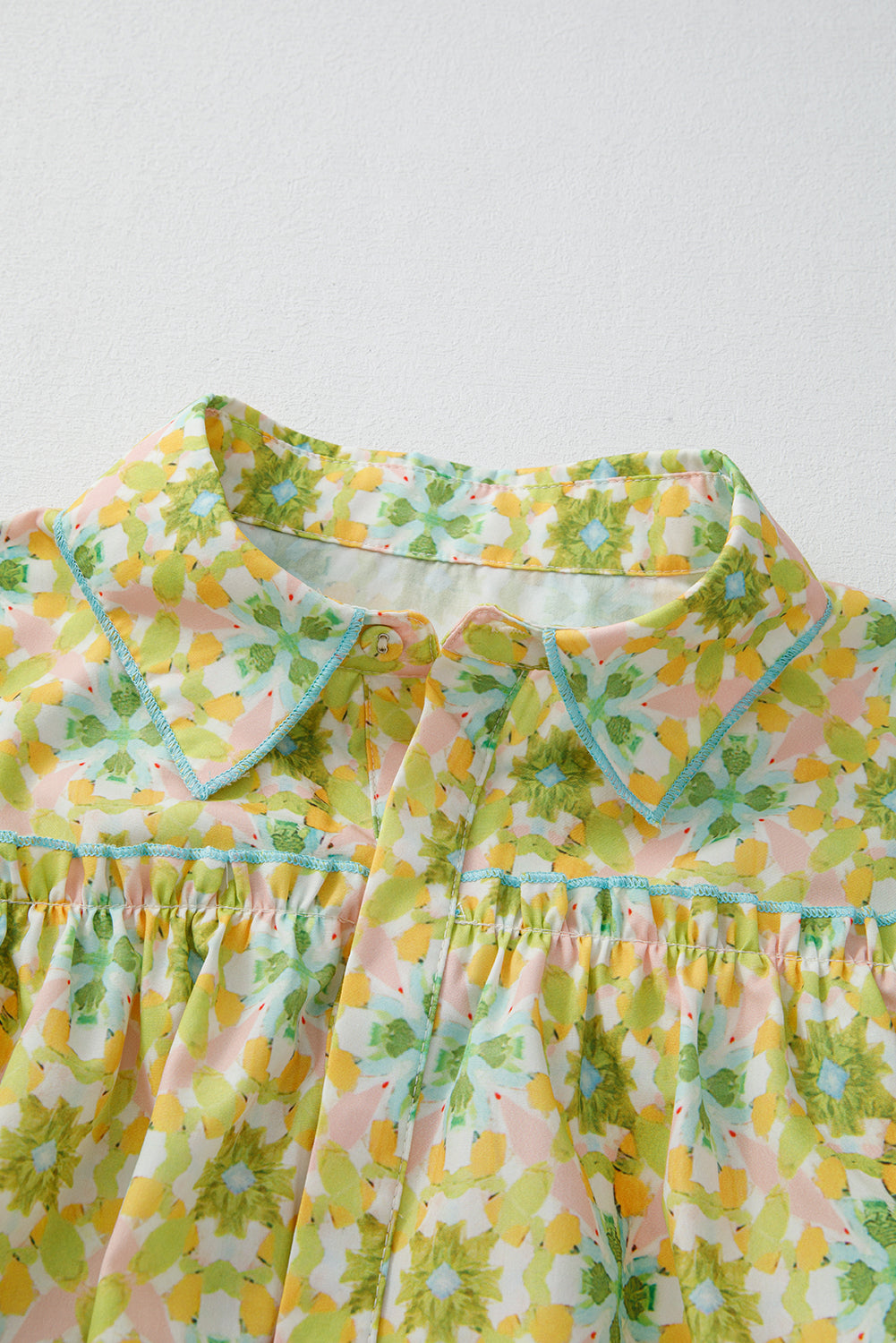 Green Boho Floral Print Frilly Detail Puff Sleeve Shirt